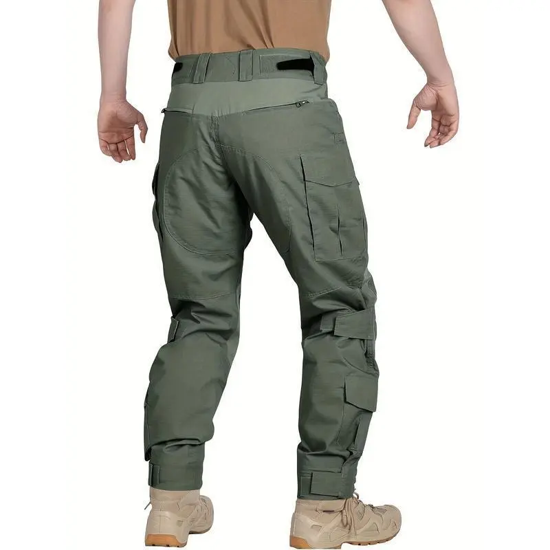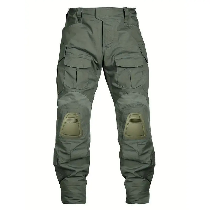 Men's Tactical Pants Overview 🌿 Men's Tactical Pants with knee pads, perfect for outdoor activities. These cargo work pants feature 10 pockets for storage. Ideal for hunting and casual wear. The pants are made from a cotton blend (50% cotton, 50% polyester). They are non-stretch and have a solid color pattern. No belt is included. Suitable for adults and universal fit. Care and Style 🌟 Machine wash these pants; do not dry clean. The style is outdoor, suitable for training, hiking, and casual outings. The fabric is non-stretch and woven. There is no printing. These pants are suitable for all four seasons. Item ID: MU 2415813. Origin: Guangdong, China.