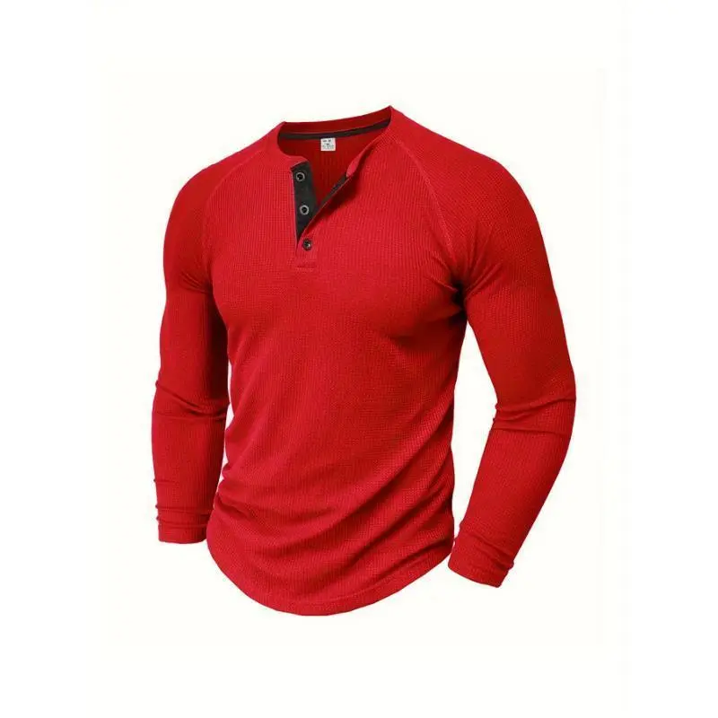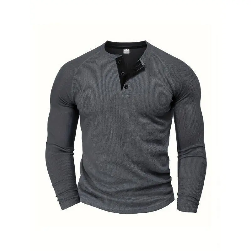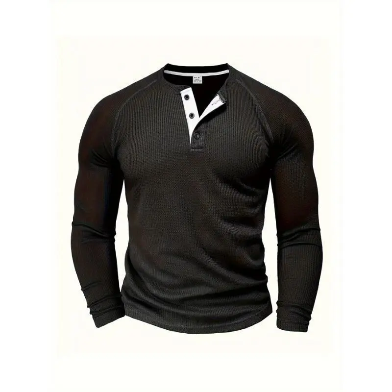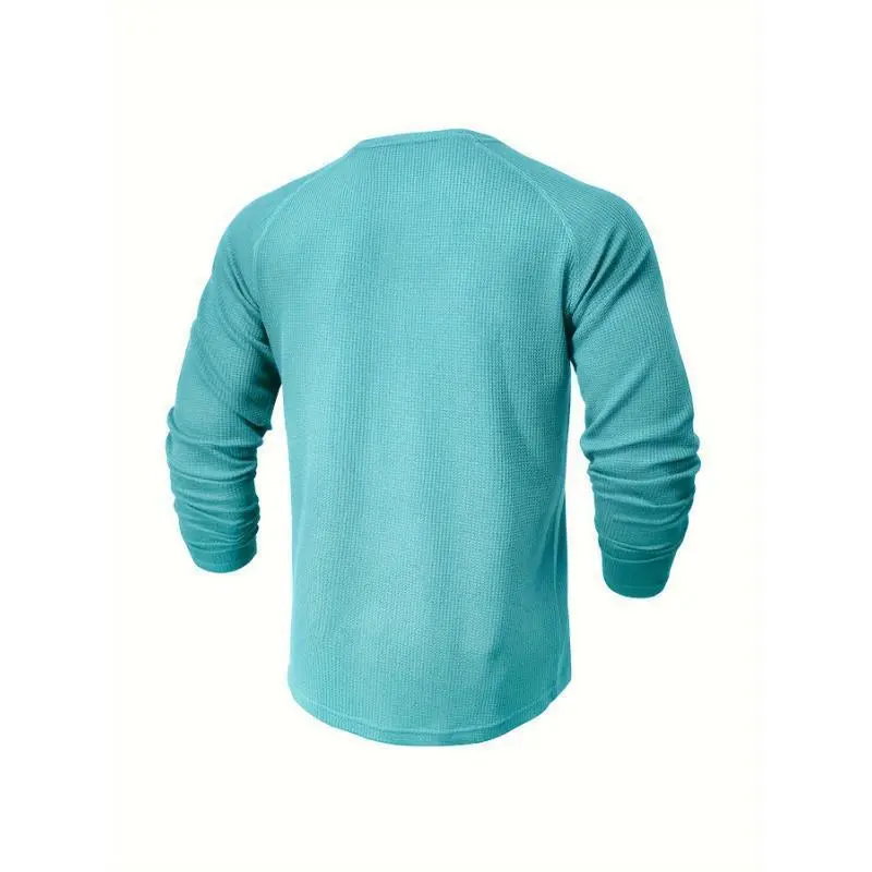 Men's Loose Solid Henley Shirt, Crew Neck Half Button Long Sleeve Shirt For Spring Fall Outdoor Activities long sleeve shirt Casual Fabric Top