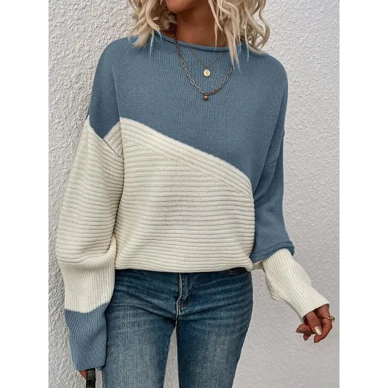 Women's Colorblock Drop Shoulder Sweater, Casual Long Sleeve Round Neck Jumper, Ladies' Knitwear for Daily Wear, Sweaters for Women, Tops, Womenswear