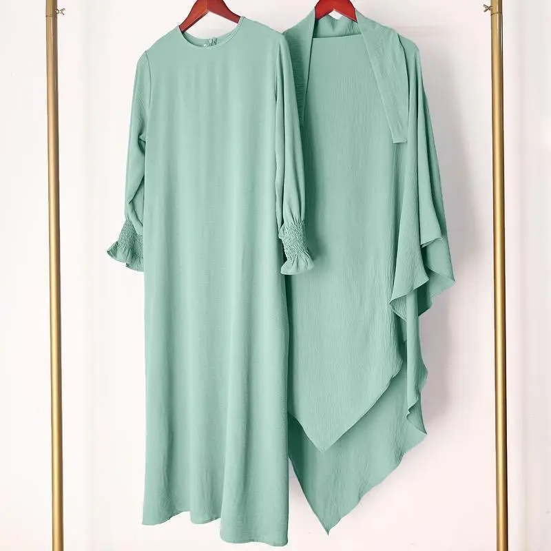 202524129 # abaya for women Muslim UK 2 piece prayer dress Muslim women with khimar hijab for women loose long sleeve maxi dress with niqab burka clothing glitter2025