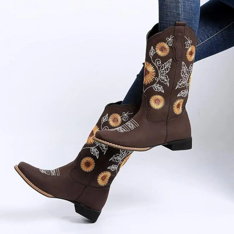 🌻 Elegant Western Boots for Women ✨ gloryinterest Cowgirl Western Boots are designed for women who love a blend of style and comfort. These mid-calf boots feature sunflower embroidery, adding a unique touch. The stitched square toe design ensures durability. Perfect for US sizes 6-10.5, these walking shoes are ideal for casual outings. 🌟 Key Features 🏃♀️ Comfort and Versatility These boots are perfect for casual wear. They combine comfort with a western aesthetic. Ideal for walking, these shoes are a great addition to any wardrobe. Available in sizes US 6-10.5, they offer a versatile fit.