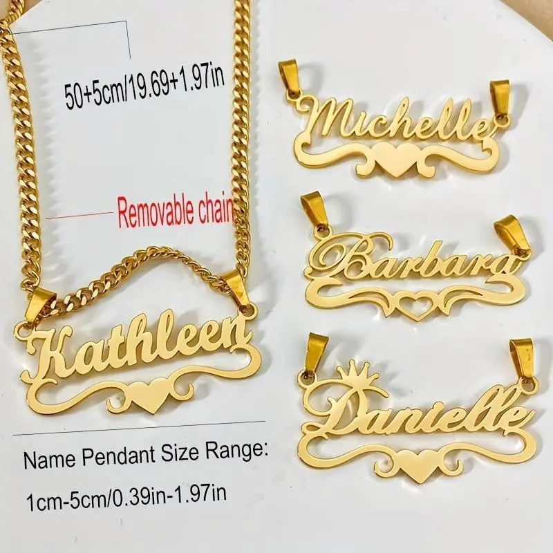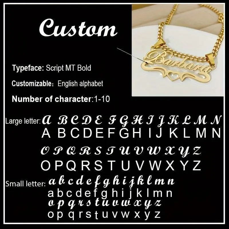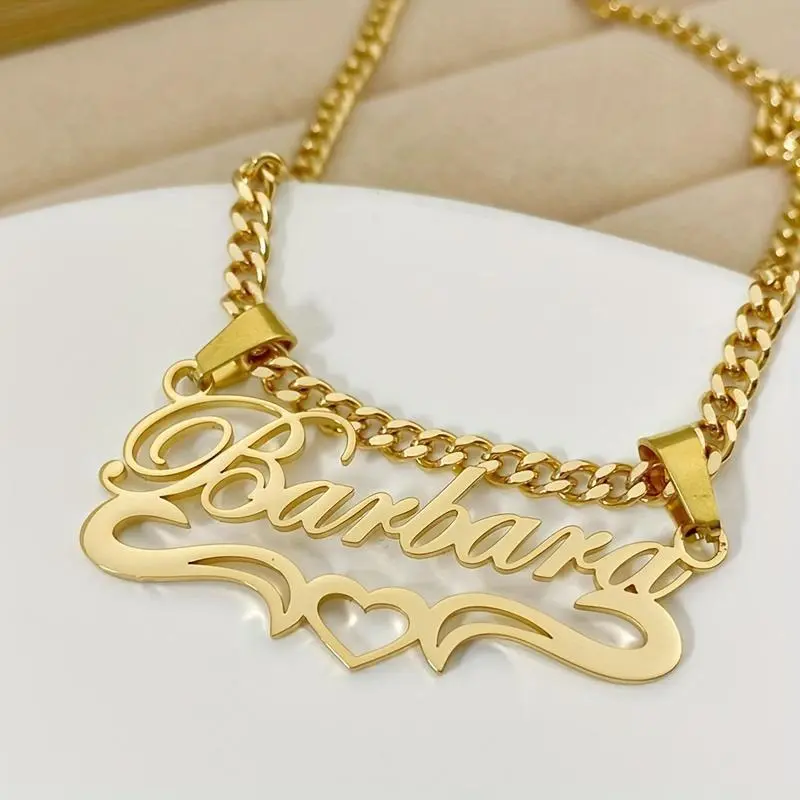 Stainless Steel Heart Tag Pendant Necklace ✨ Custom Name, Removable Cuban Chain ✨ This personalized jewelry features a stainless steel heart tag pendant. It includes a removable Cuban chain, making it versatile for daily wear, parties, and Christmas. Ideal for best friends and family, this necklace offers an elegant and hip hop style. No plating is used, ensuring a clean look. Multiple styles are available, including Style 2-Script MT Bold, Style 3-Script MT Bold, and Style 4-Script MT Bold. This necklace is an ideal gift for best friends and family. It is perfect for daily wear, parties, and Christmas. The stainless steel heart tag pendant and removable Cuban chain make it a versatile piece of jewelry. Choose from multiple styles to find the perfect match for any occasion.