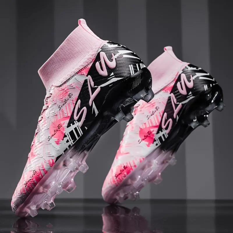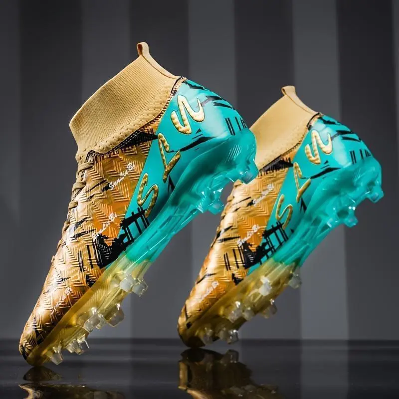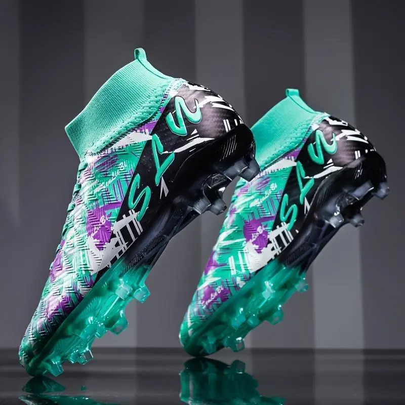 High-top TF Training Artificial Turf Indoor and Outdoor Long Spike Soccer Shoes, Unisex