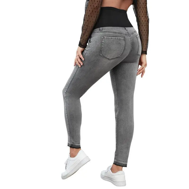 Maternity High Waist Belly Support Denim Pants Fashion Slim Fit Stretch Spring Autumn Maternity Wear