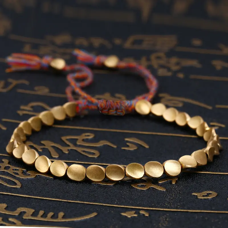 Tibetan Copper Bead Bracelet - Red String, Lucky Rope Design, Adjustable for Women and Men, Gift for Women, Men, Christmas Birthday Gift