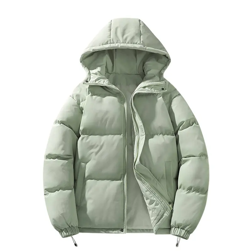 Unisex Hooded Puffer Jacket, Polyester Fiber Filled, Non-Stretch Solid Color, Long Sleeve, Regular Fit, with Drawstring, Zipper Placket, for Daily Casual Wear, Spring/Autumn/Winter Coat, MD3333
