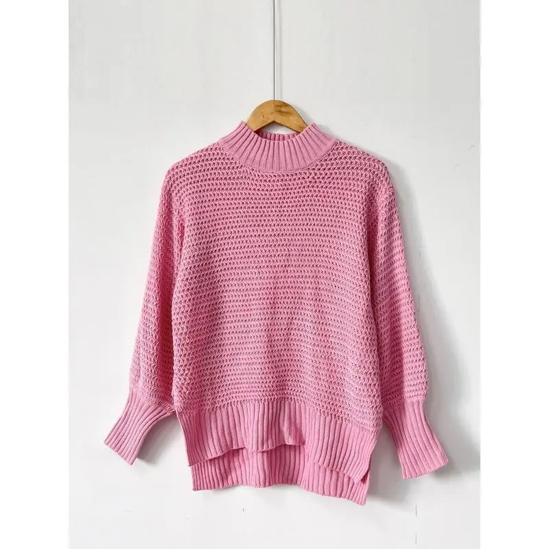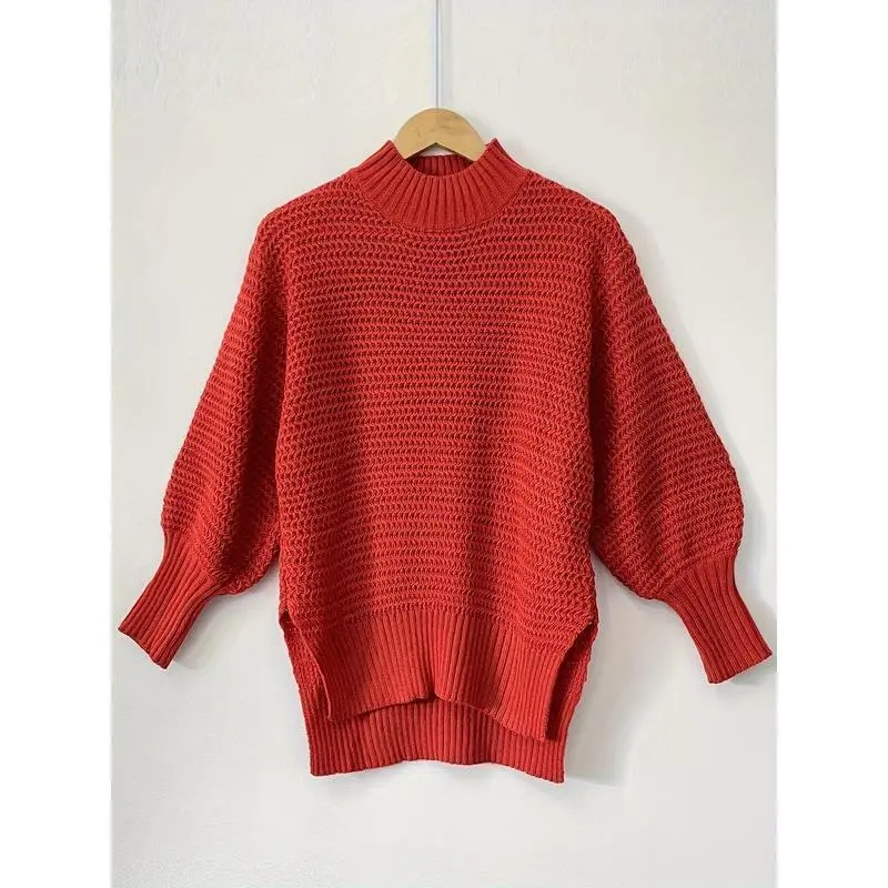 Low High Hem Mock Collar Sweater, Elegant Autumn and Winter Long Sleeve Sweater, Women's ClothingGift Knitwear Fabric Elastic WomenswearGift