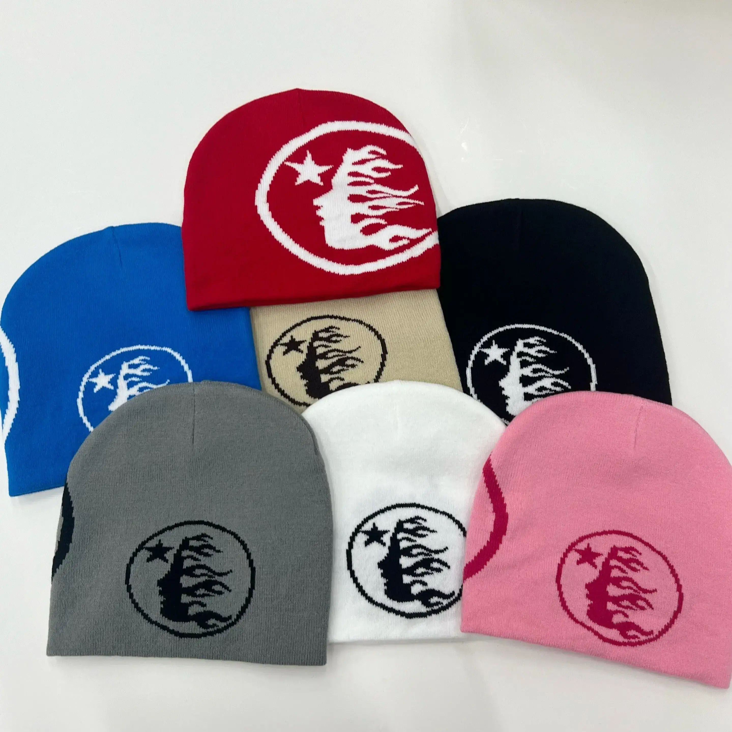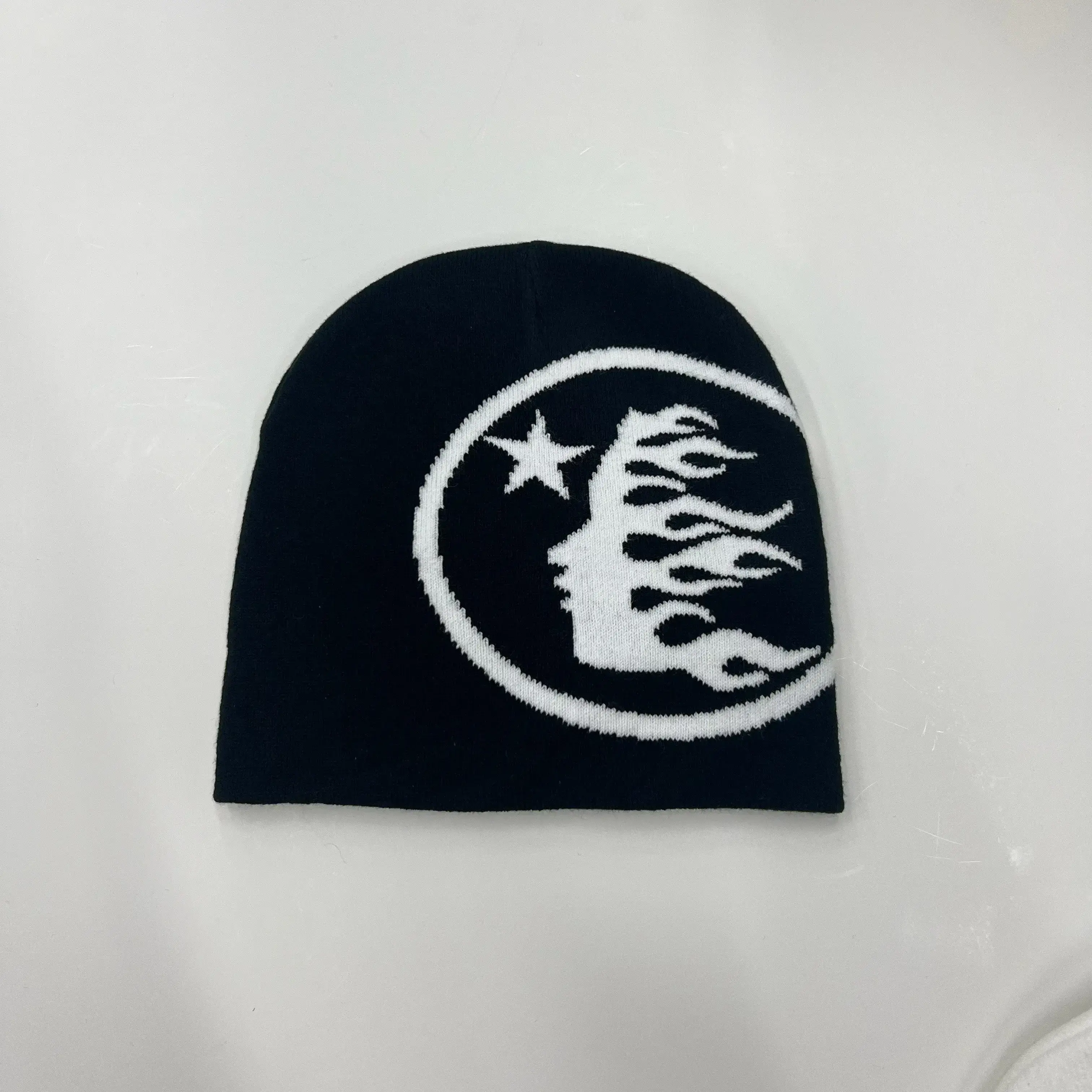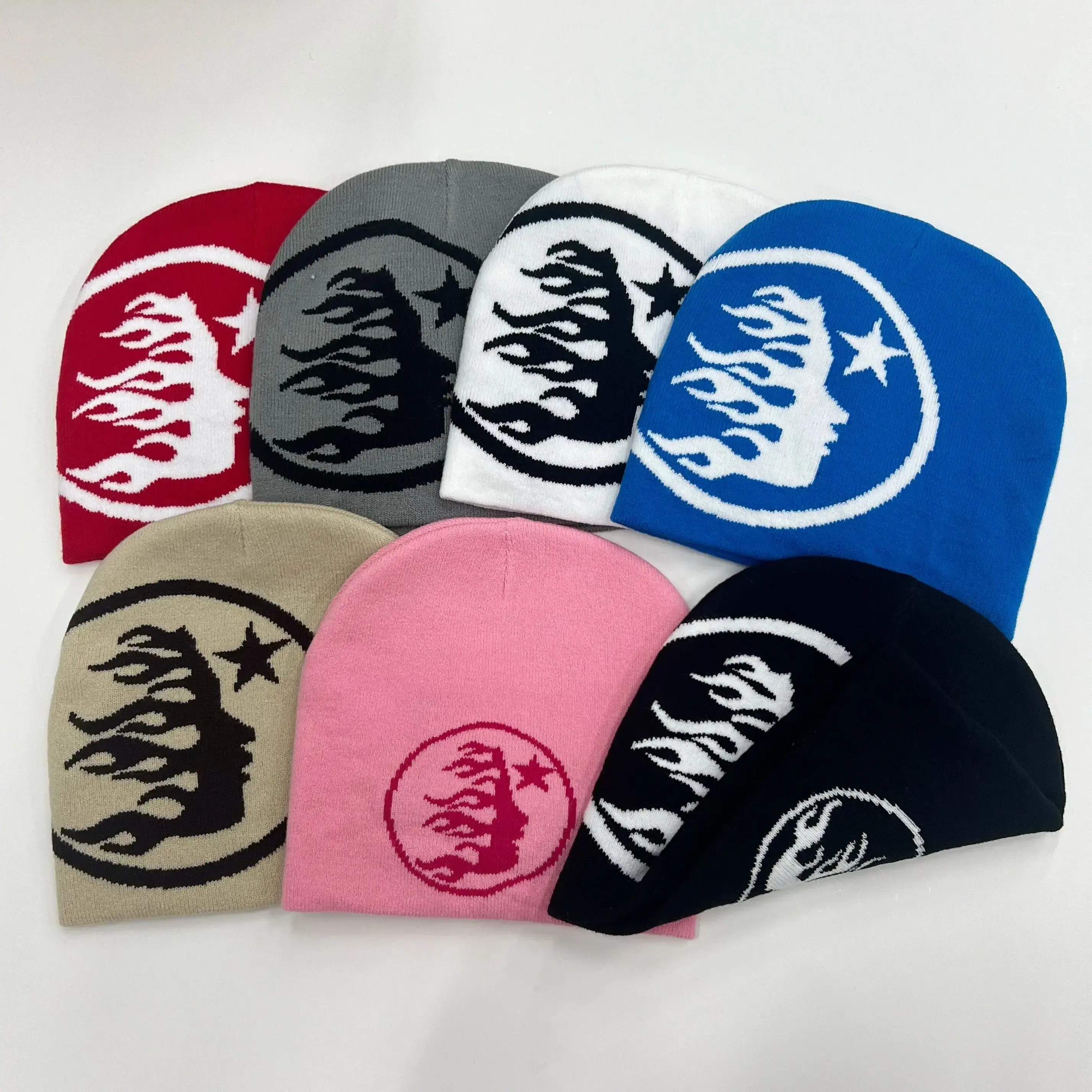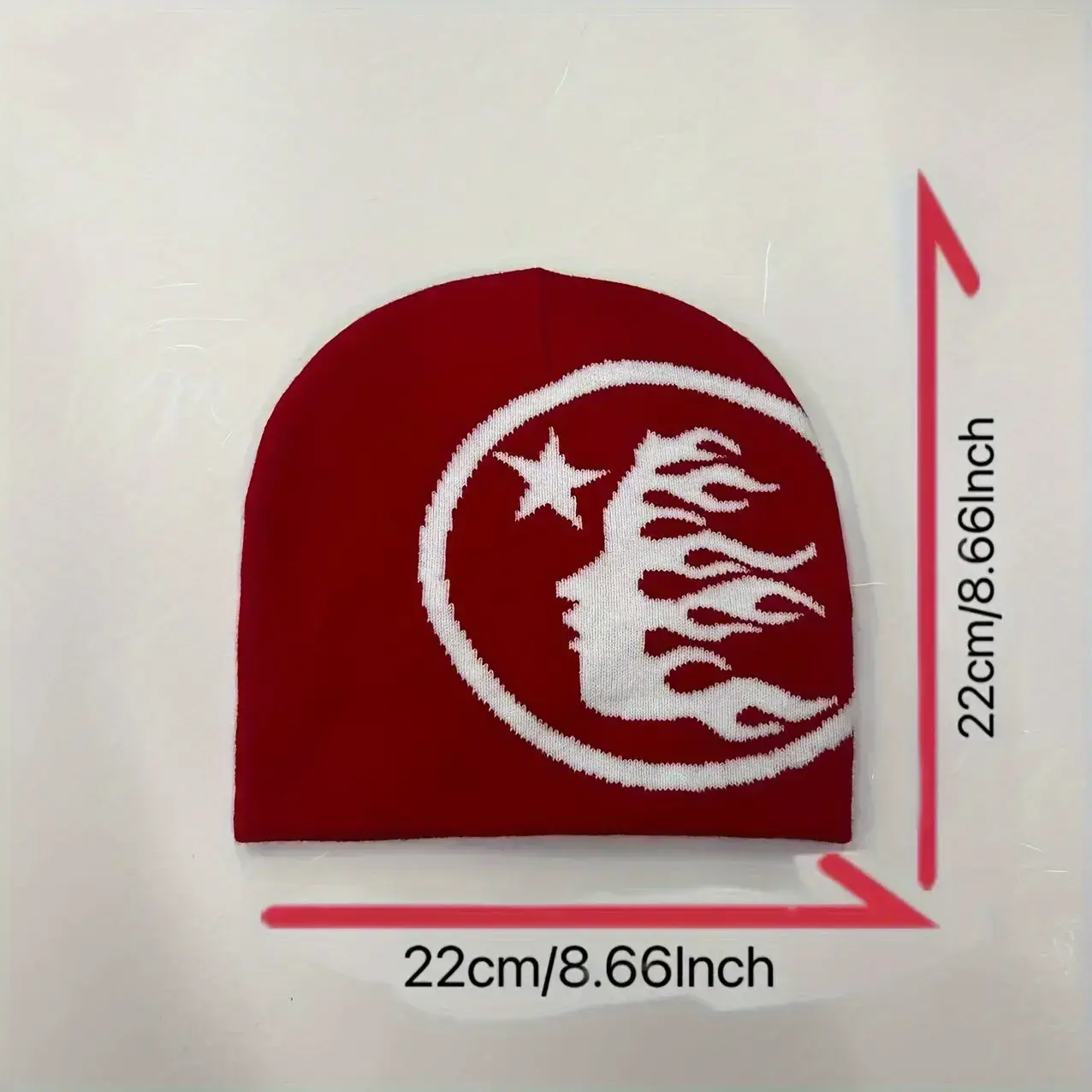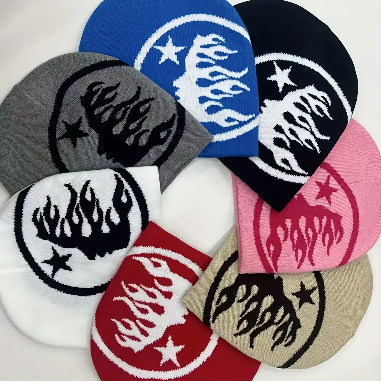 [Warm Stretchy Acrylic Beanie Hat] Flame & Star Design Knit Beanie - Warm, Stretchy Acrylic Blend, Elegant Letter Jacquard Winter Hat in Multiple Colors, Hand or Dry Clean Only, Beanie Hats