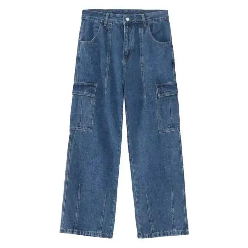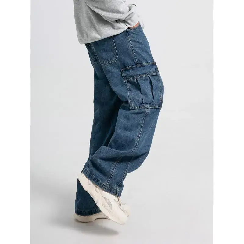 Men's Casual Jeans Overview 🌟 Men's Casual Jeans with multiple pockets, straight tube, loose fit, and slimming wide leg design. Perfect for workwear, street hop, street dance, and skateboarding. These denim pants are made from a cotton blend: 75% cotton, 5% other fibers, and 20% viscose. They feature a solid color pattern and are suitable for adults. Non-stretch fabric ensures a comfortable fit. Material and Care 🧶 Details and Style 🎨
