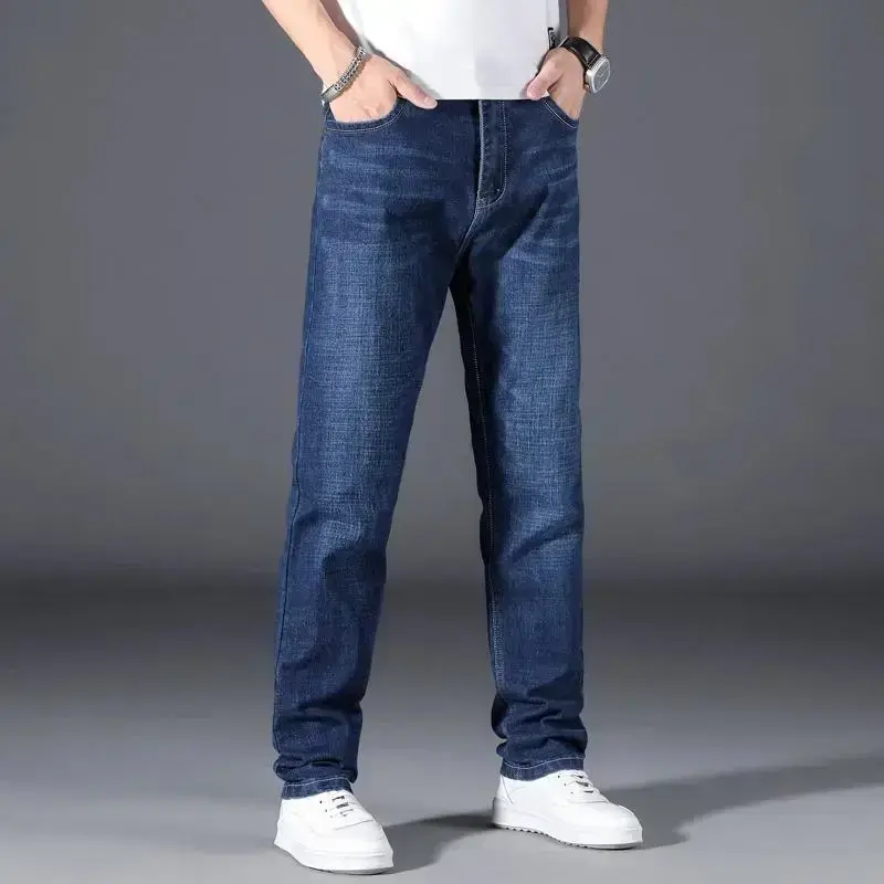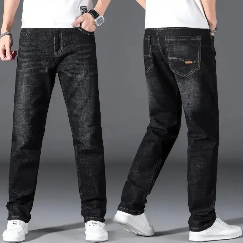Plus Size 42 44 46 48 50 Classic Men's Jeans Loose Straight Black Blue Stretch Business Casual Trousers Male Brand Pants Ripped Pocket Design skinny jeans baggy pants black jeans