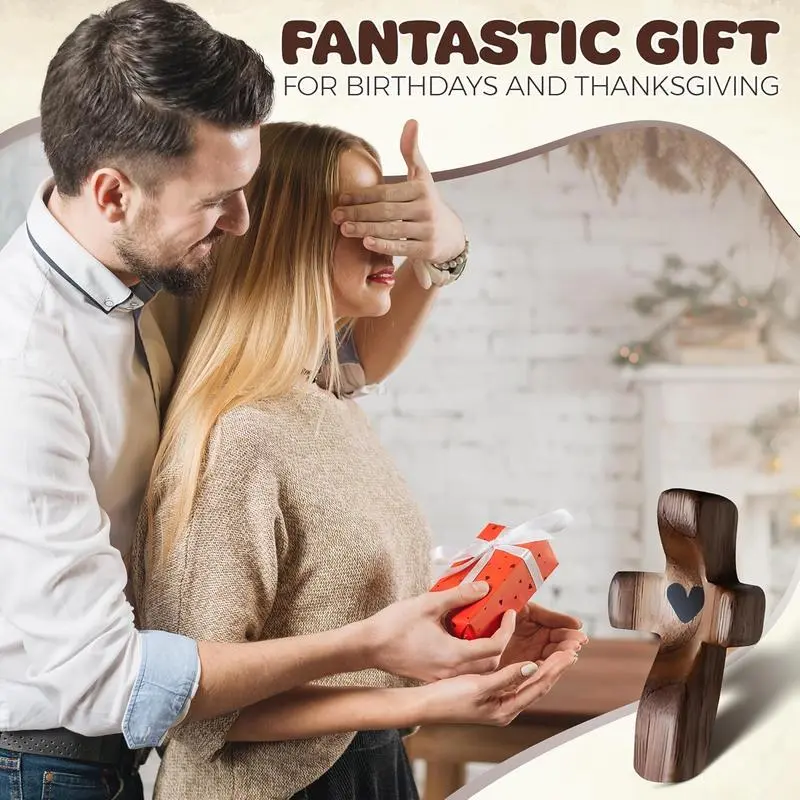 Material: Natural solid black walnut, gives you a very comfortable touch feeling. Size: 2 x 1 x 0.75 in.light weight and portable, you can put it in your pocket, you can take it out whenever you need it. Inspirational Encouragement Gift: "Cross My Heart" is a beautifully crafted wooden love cross memorial token that serves as an inspiring and heartwarming gift to uplift the spirits of your loved ones. The small cross can be carried in your pocket or in the palm of your hand as a reminder to cling to God's grace, love and mercy in times of trial and uncertainty. Remember that God is with you, He favors you, and your days are firmly in His hands. Ergonomic Finger-Friendly Shape: Designed with contoured grooves and curved edges to nestle comfortably between fingers.
