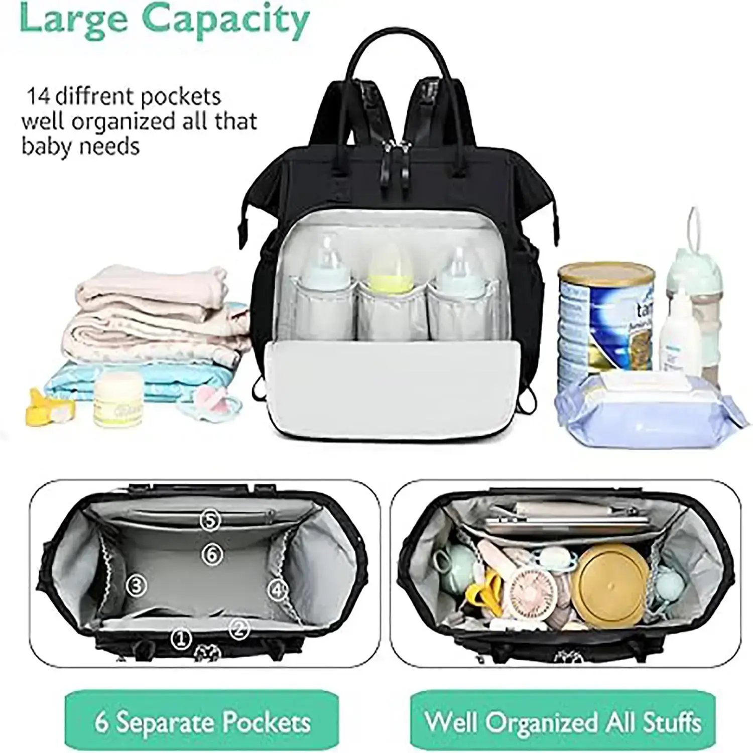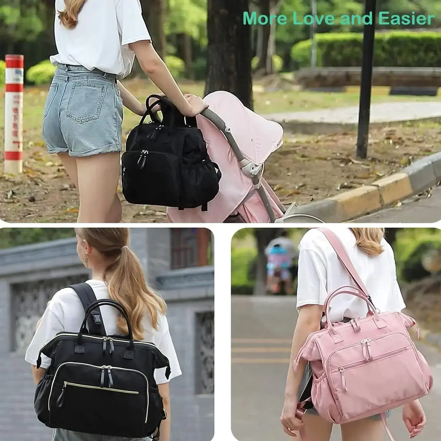 【Waterproof Material】: Constructed from waterproof fabric, this diaper bag protects contents from getting wet during travel or outdoor activities. 【Anti-Theft Pocket】: Features a special anti-theft pocket for secure storage of valuable items, ensuring safety while on the go. 【Multiple Compartments】: Equipped with multiple storage compartments, promoting organized packing for all essential items needed for children. 【Portable Design】: This bag comes with a convenient handle, making it easy to carry around during outings or trips while keeping hands free. 【Sleek Aesthetic】: Designed with a simple yet attractive look, this diaper bag appeals to parents looking for functional and attractive storage solutions.