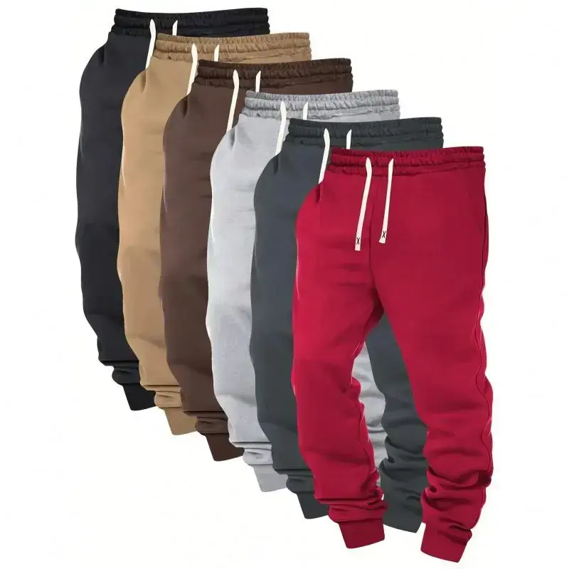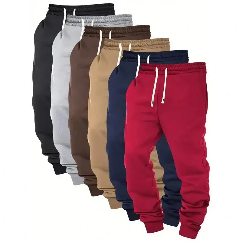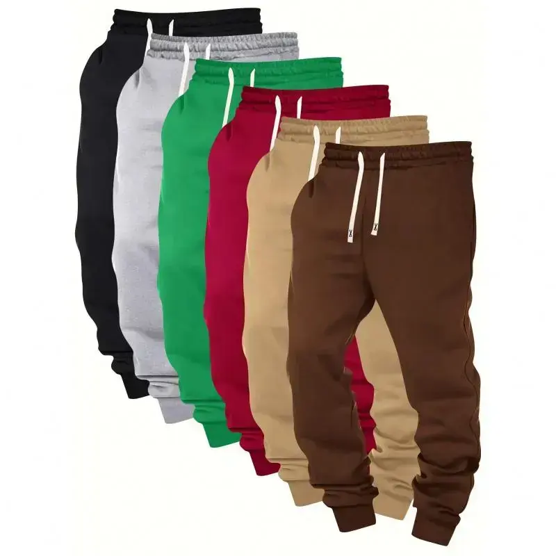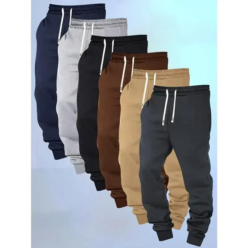 6-Pack Men'S Solid Color Sweatpants, Polyester Knit Fabric, Regular Fit, Drawstring Waist, Casual Athletic Joggers with Pockets, Slight Stretch, Spring/Fall Season, 210g/m2 Weight solid color sweatpants cuffed sweatpants