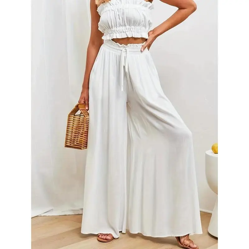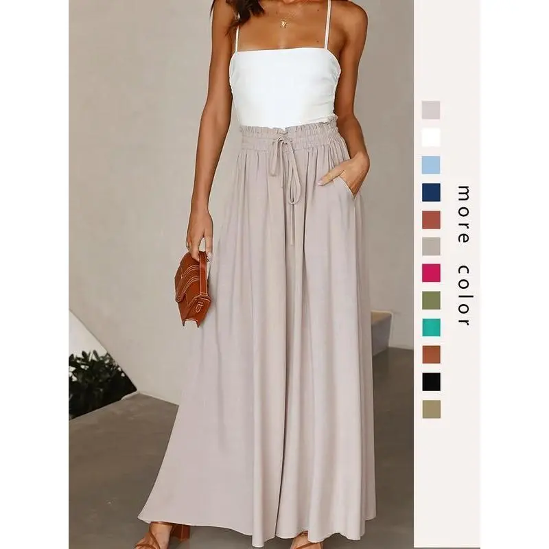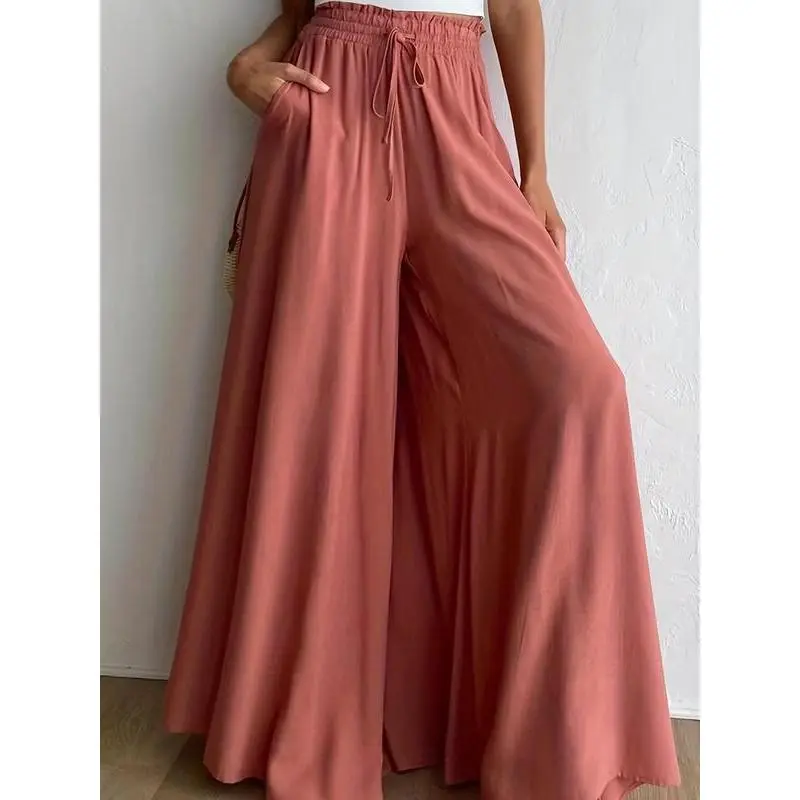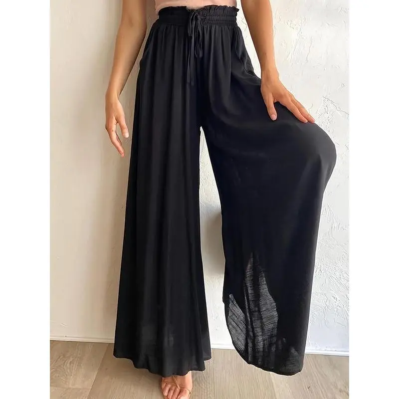 ? ?Timeless Comfort?? : High waist with a drawstring offers a personalized fit, ensuring comfort throughout your daily activities without compromising on appearance. ? Functional Details : Equipped with practical pockets, these trousers allow for easy storage of essentials, combining utility with fashion-forward thinking. ? ?Fluid Movement?? : The wide leg cut promotes unrestricted movement, making these trousers perfect for a range of activities from work to leisurely outings. ? Contemporary Fit : With a fitted silhouette that flatters various body types, these trousers elevate your look while providing a polished, put-together feel. ? ?Seasonal Staple?? : Ideal for fall, the woven fabric balances warmth and breathability, making it a perfect addition to your wardrobe as temperatures drop.
