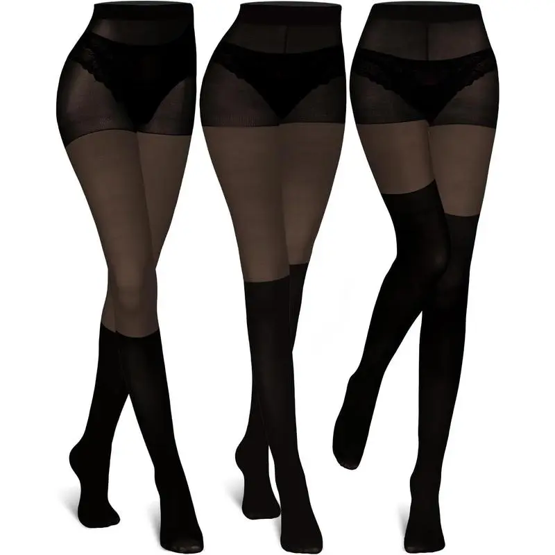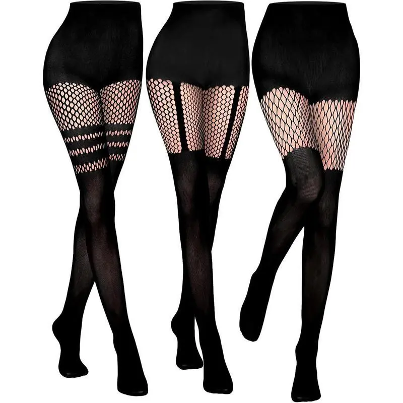 Sufficient Quantity: You will receive 3 pairs of faux thigh high tights with different styles, which can meet the needs of daily wear.The thigh high tights provide rich choices for every woman who pursues personality and fashion, can easily cope with various modeling needs and add a touch of fashionable to your dress up Good Quality Material: Our goth tights are made of good quality nylon and spandex to ensure comfort and durability.Nylon fabric has wonderful abrasion-proof, while spandex provides good elasticity, so that fishnet tights can ideally fit your leg curve and show beautiful leg lines.This good-quality material combination not only makes the fishnet stockings for women soft to touch, but also has good breath-ability, ensuring that you can feel comfortable Suitable for Most People: One size fits all design, each pair of faux thigh high tights adopts elastic plate design, can ideally fit the leg lines of different body types,thigh high tights are suitable for most women and girls, provides you with nice fit and comfort, and you can confidently show your figure and feminine charm Application Scenario: The faux thigh high tights are very suitable for many occasions.You can wear the goth tights in various occasions such as daily wear, dating, work, etc and you can also wear the fishnet tights confidently in occasions such as Christmas, Halloween, Thanksgiving, Easter, birthday, stage performance, parties, dinners, masquerade balls, etc.The fashionable design and comfort wearing make you show charm and elegance in any occasion and become the focus of attention Ideal Matching: The 3 pairs of high tights support diversified matching, making your fashion choices more flexible. The thigh high tights can match with hollow jeans, shorts, short skirts, dresses, casual wear, high heels, sweaters, coats and more,fishnet tights can enhance the fashion sense of the overall shape, add unique charm to your every trip, and show your personality and style
