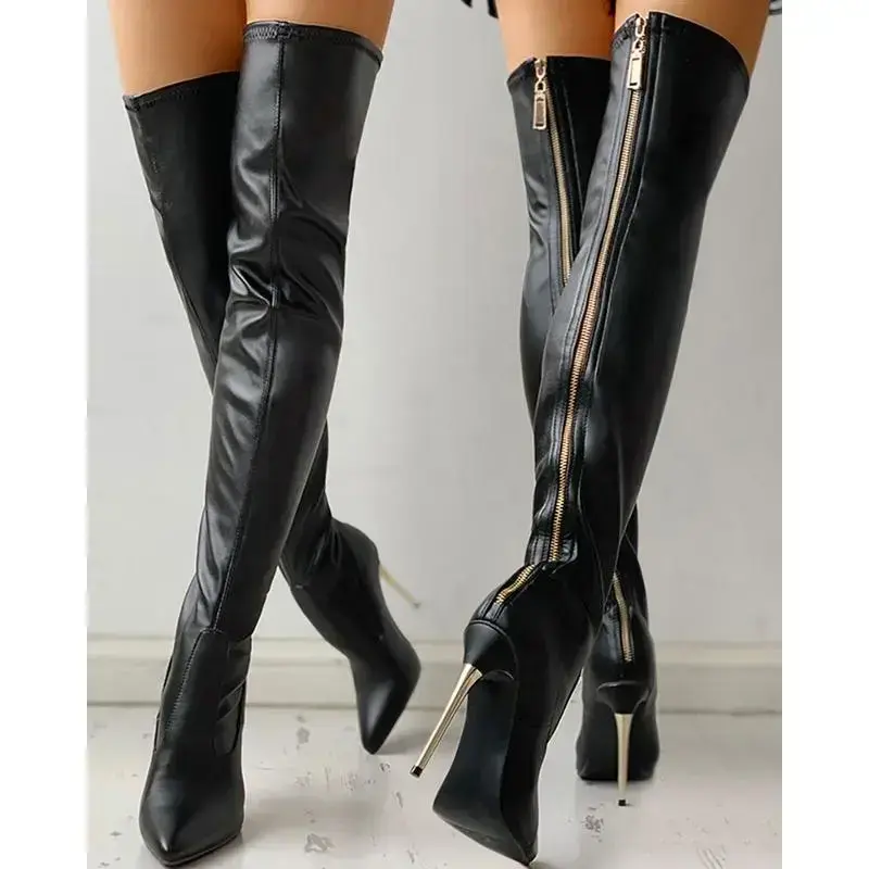 Upper Material: PU Toe Shape: Pointed Toe Shaft Material: PU Season: Spring/Autumn Pattern Type: Solid Outsole Material: PU Lining Material: PU Item Type: Boots Insole Material: PU Heel Type: Thin Heels Heel Height: Super High (8cm-up) Department Name: Adult