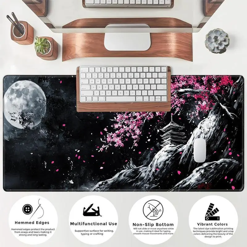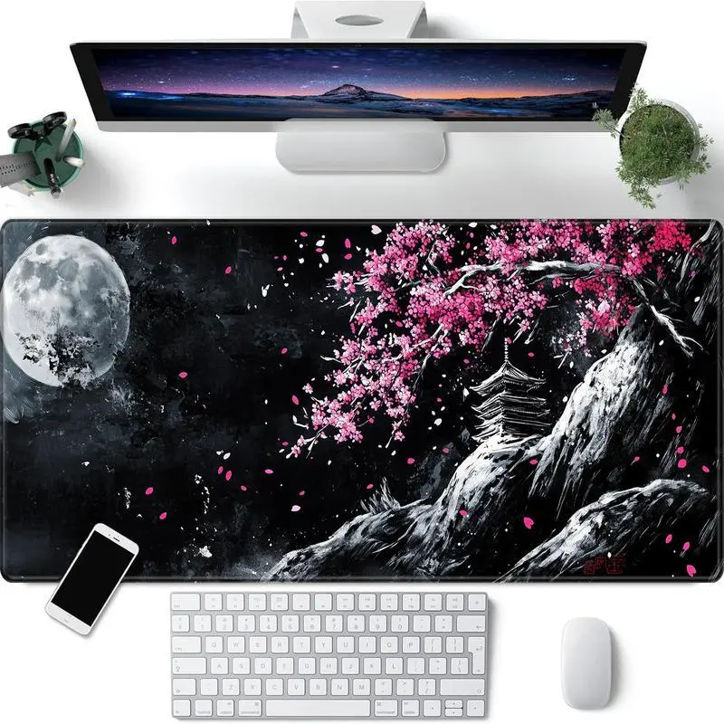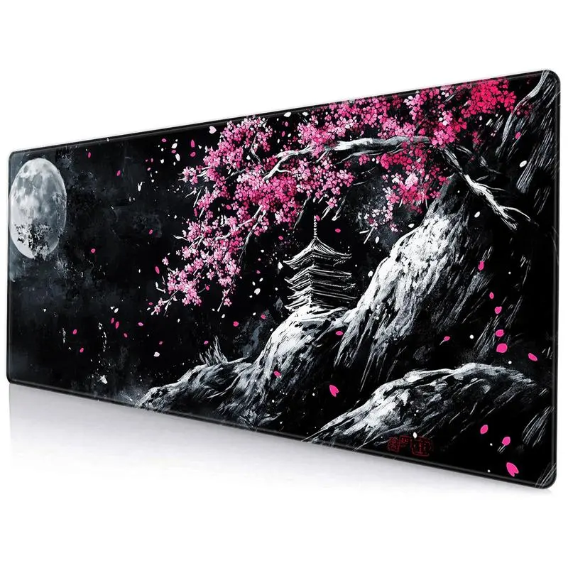 Cherry Blossom Landscape Pattern Mouse Pad, 1 Count Rectangle Gaming Mouse Pad with Anti-slip Rubber, Office Desk Keyboard Mouse Pad for Home Office Game Room Desk