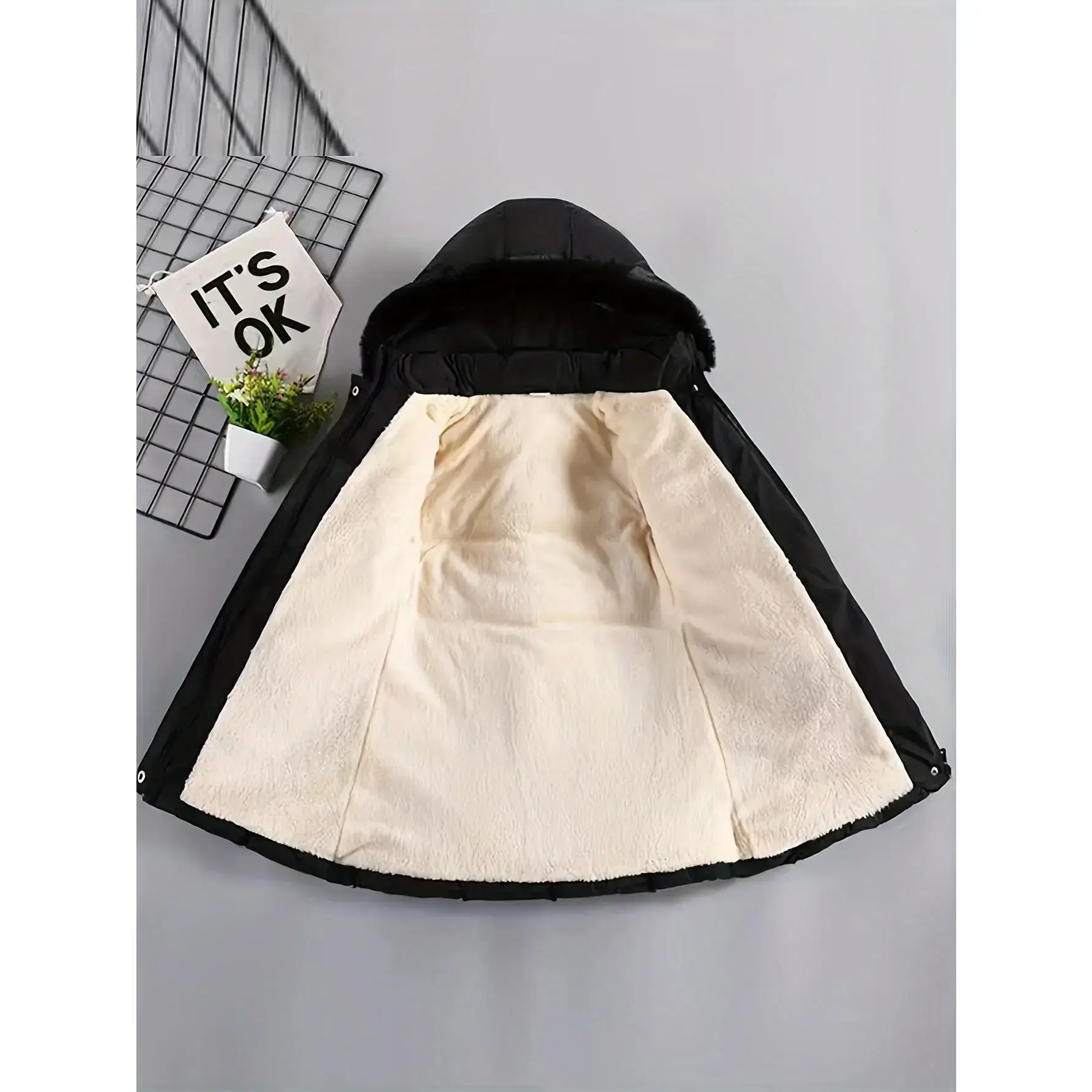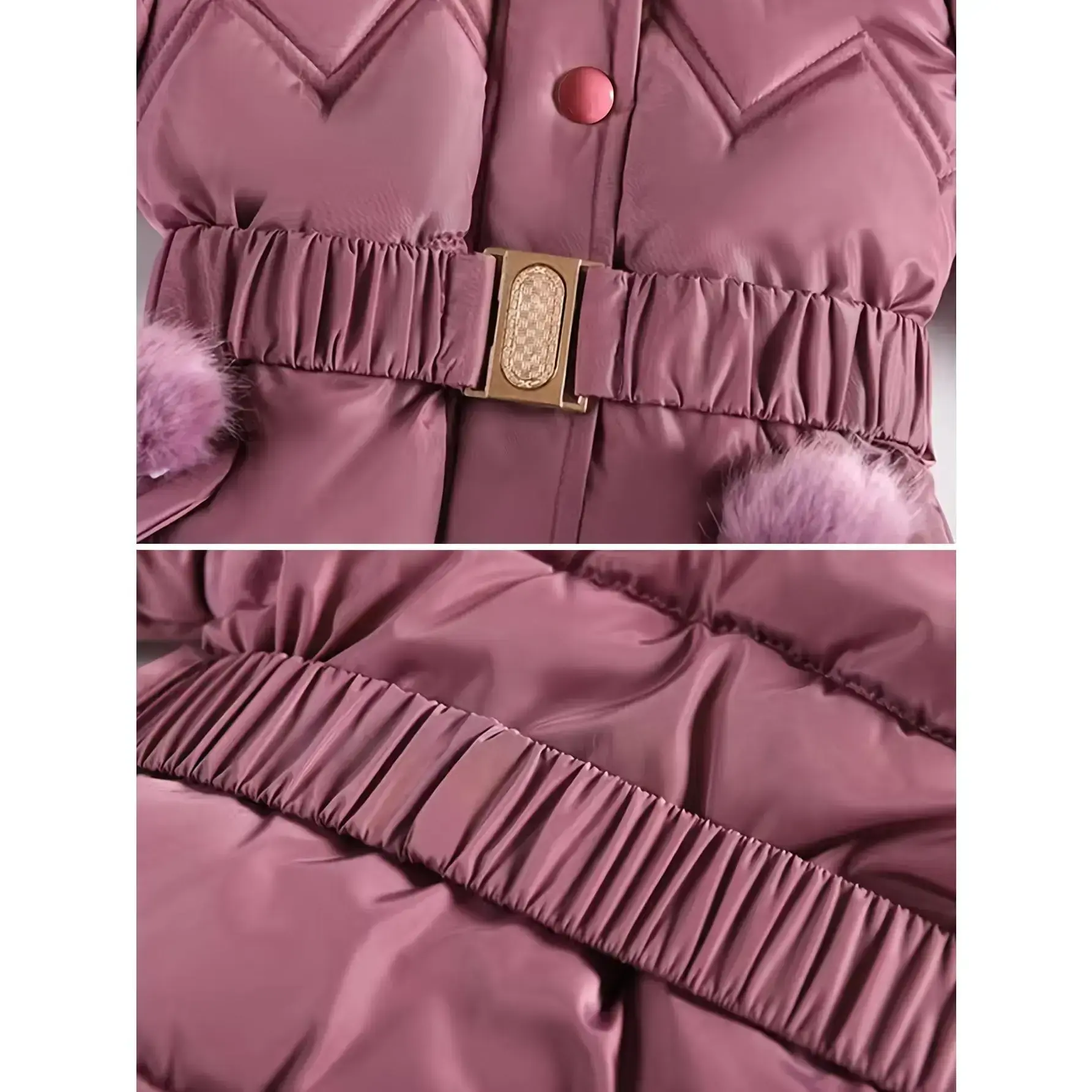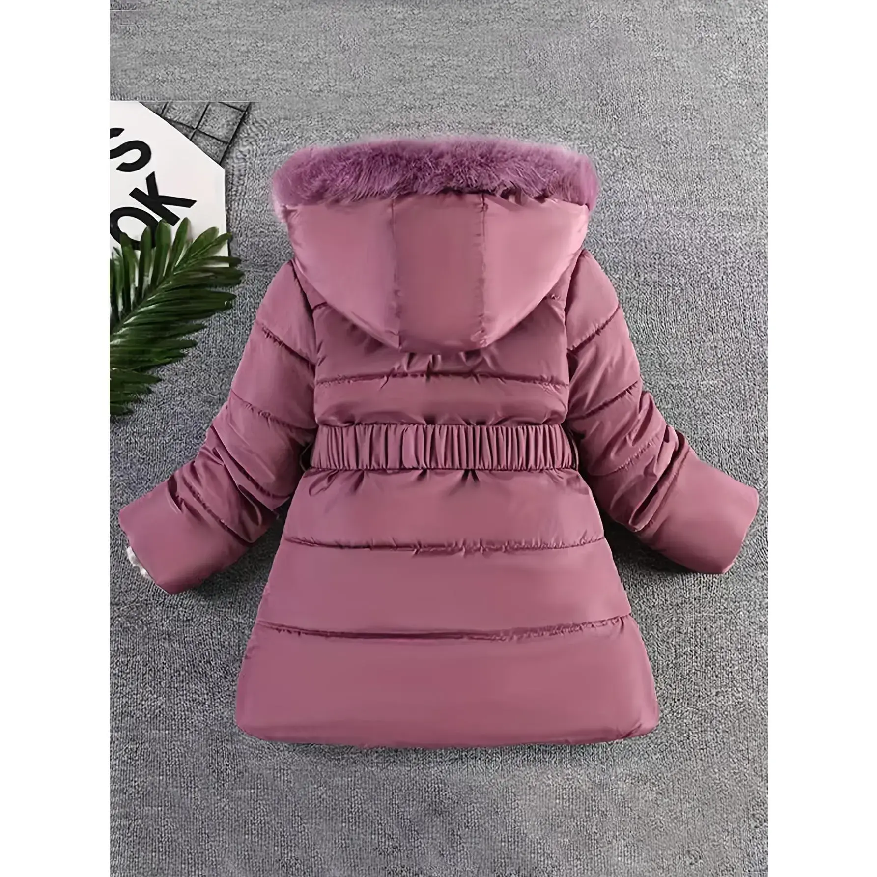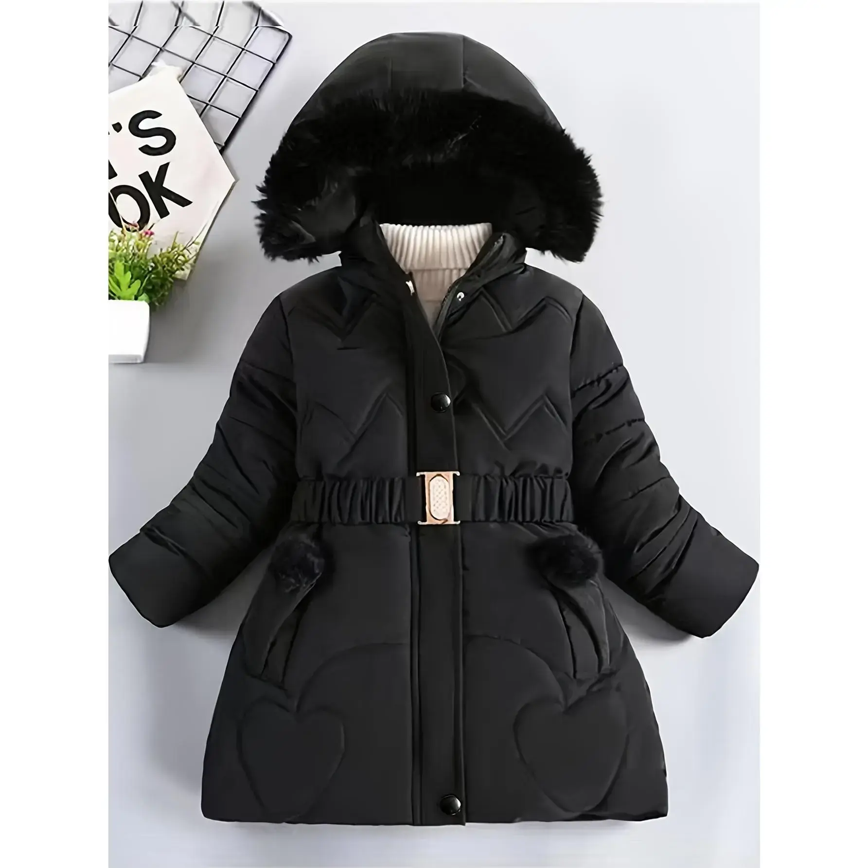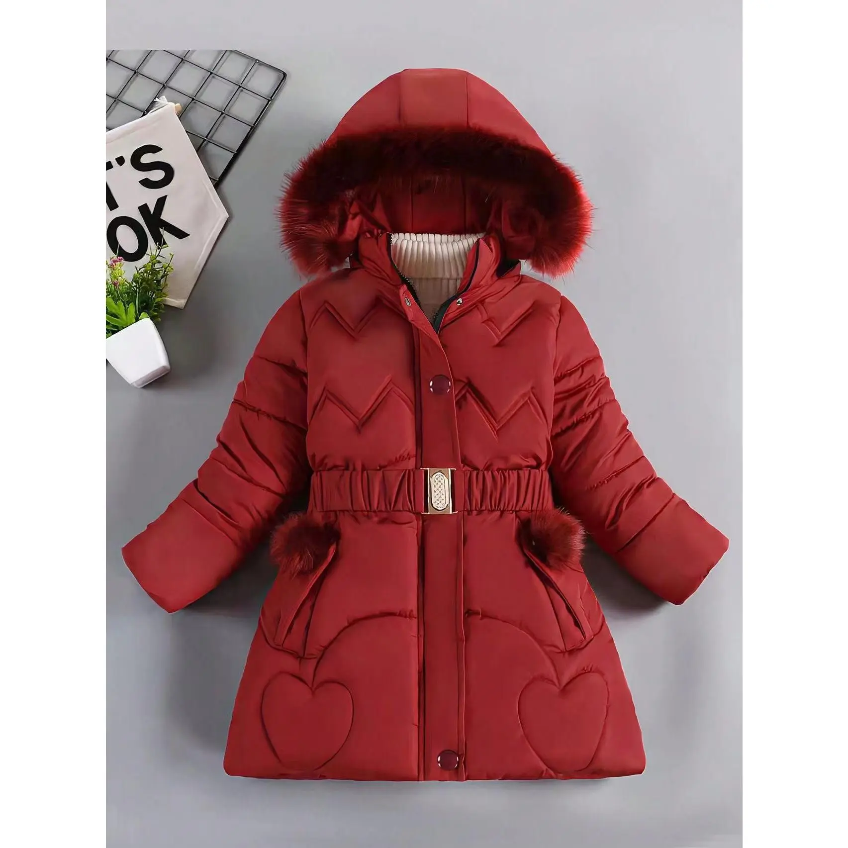 Material: PolyesterComposition: 100% PolyesterLength: MidiBelt: YesSleeve Length: Long SleeveSleeve Type: Regular SleeveDetails: BeltPattern: Geometric-patternSheer: NoFabric: Non-StretchPlacket: ZipperCollar Style: HoodedType: ParkaContour: ConventionalSeason: Fall/WinterOperation Instruction: Hand wash,do not dry cleanStyle: BasicsFit Type: RegularApplicable Age Group: Over 3 Years OldWeaving Method: WovenElephants: Polyester Fiber (polyester)Applicable People: GirlsItem ID: UW160579Origin: Guangdong,China