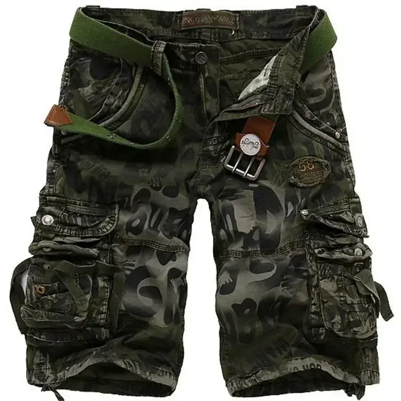 WorkShortsBreathableFivePantsSummerMen'sCasualShortsFashionCamouflageMulti-pocketZipperLooseCombat