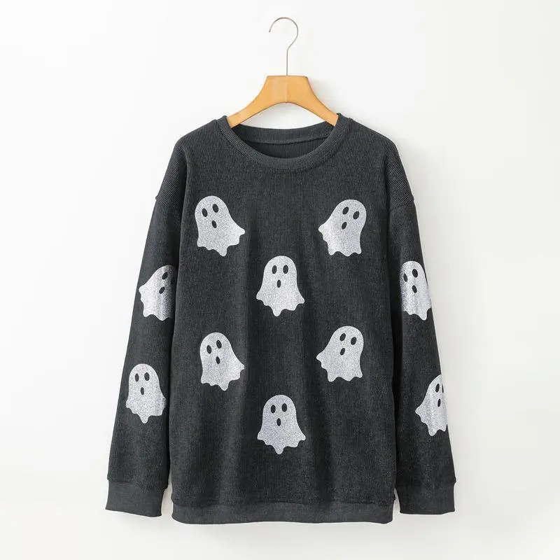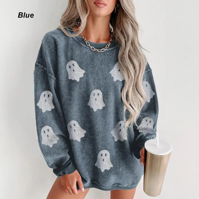 🎃Women's Halloween Ghost Pattern Corded Crew Neck Loose Sweatshirt🎃 Design & Theme: This sweatshirt features a Halloween ghost pattern, perfect for festive occasions.The corded crew neck adds a unique touch.🎃 Fit & Style: The loose fit ensures comfort and ease of movement.Ideal for casual wear, it's a great addition to your women's wardrobe.🧸 Occasion & Gift: Suitable for Halloween events, this sweatshirt makes a thoughtful gift.It's a comfortable and stylish choice for women.🎁 Product Details: - Women's sweatshirt - Halloween ghost pattern - Corded crew neck - Loose fit - Comfortable womenswear - Gift option🎁