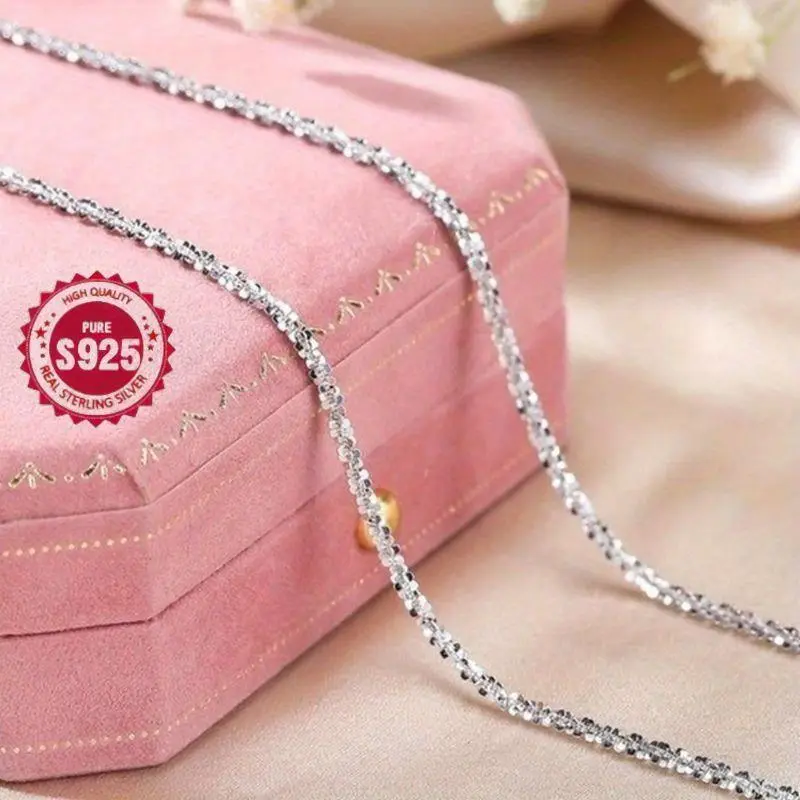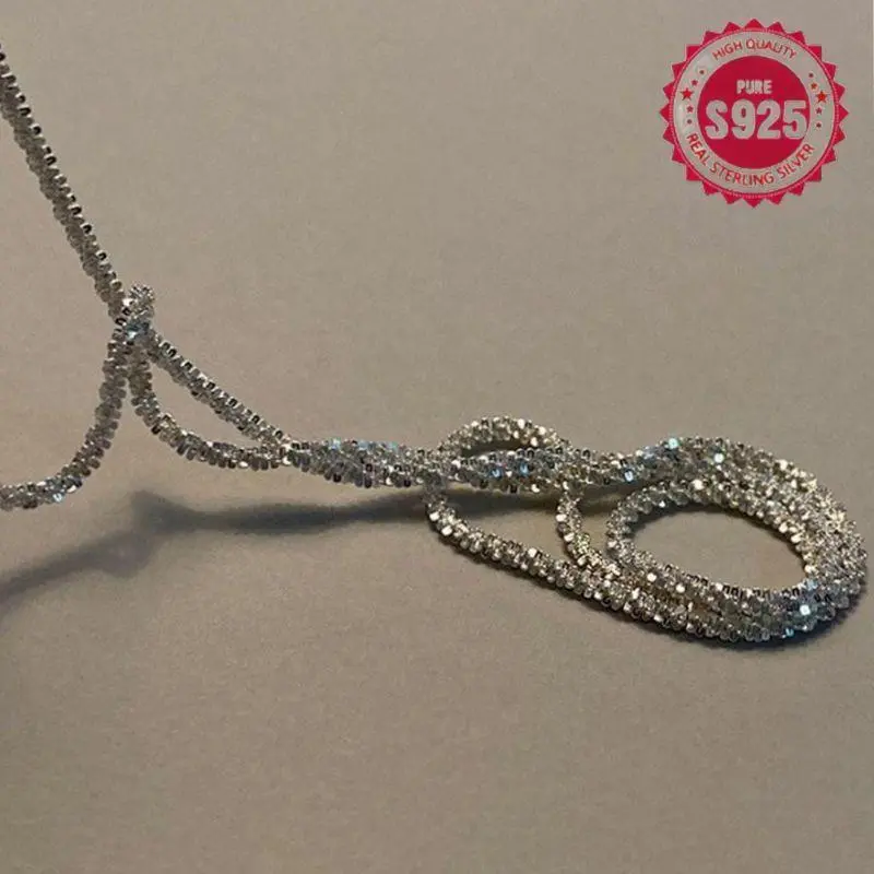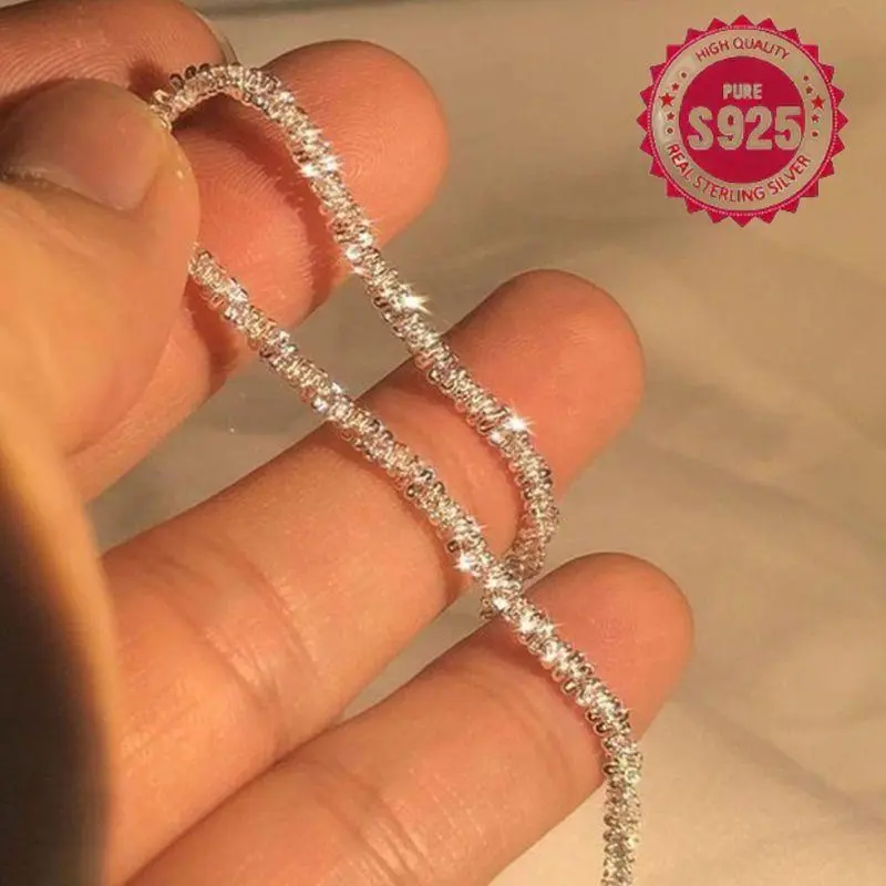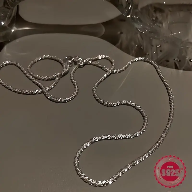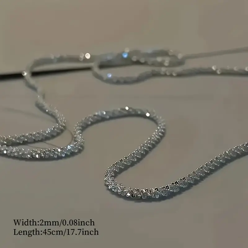 JC-J 925 Sterling Silver Starry Shiny Ice Chain Necklace, 18 Inches-30 Inches Adjustable Clavicle Chain for Men and Women, Stackable Jewelry, Suitable for Wedding Engagement, 2mm, Couple Niche mother's day gift gifts1