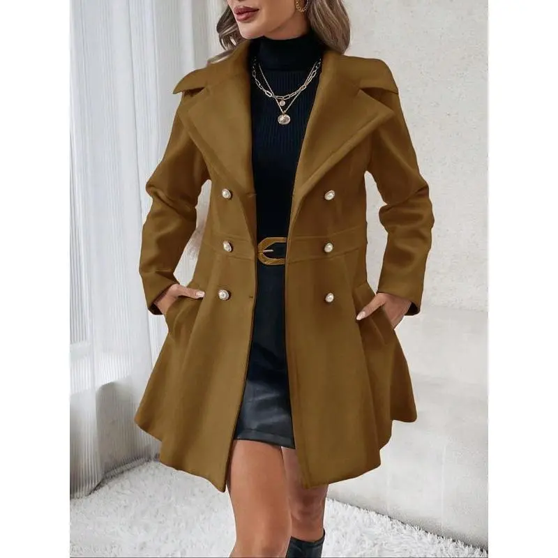 Women's Solid Double Button Pocket Overcoat, Casual Long Sleeve Lapel Neck Outerwear for Fall & Winter, Clothes Daily Wear, Clothing Women, Cute Tops, Jackets Women Elegant White Womenswear Gamis