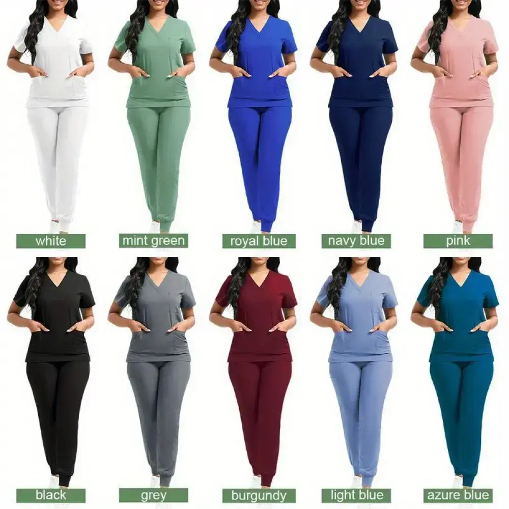 1 Set Women's Polyester Scrubs, Fitted Nurse Uniform with Patch Pocket, Woven Work Clothes for Beauty SPA, Veterinary Dentistry - High-Quality Professional Apparel, Nurse Accessories for Work(gift)