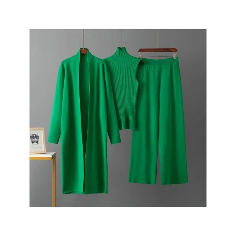 2026 newest suit high elasticity Women's loose suit, long wide-legged pants + shawl cardigan + turtleneck sweater fashion three-piece set Can be worn up to 70kg Suitable for female Can be used with raincoat