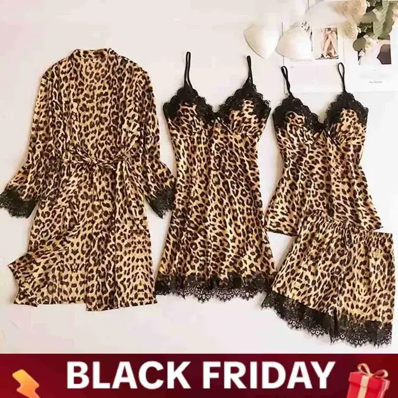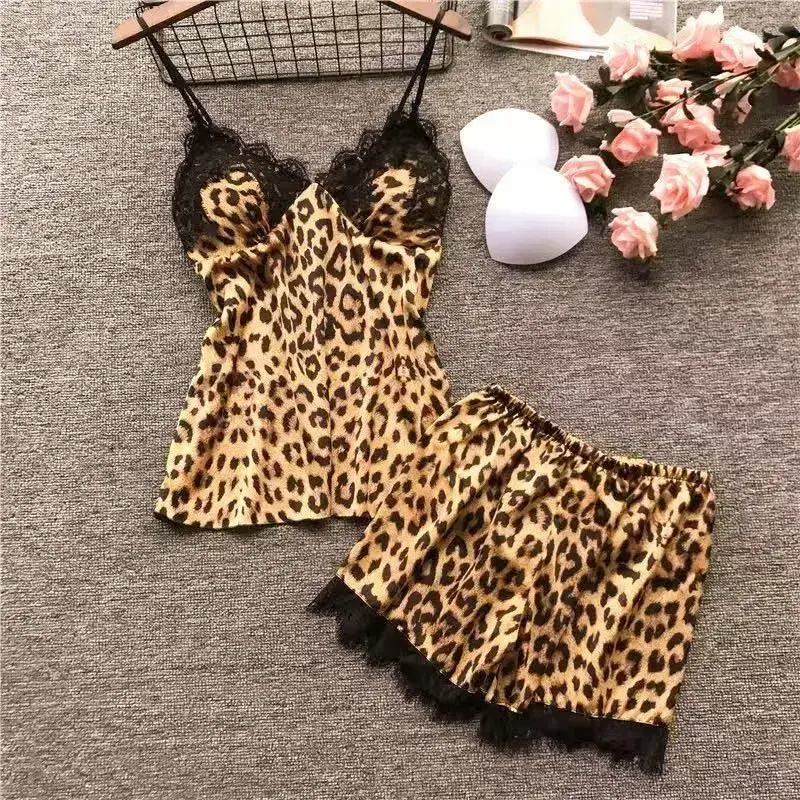 shop ,Leopard Print Pajamas Mix & Match Sets for Women Lingerie with 9 Combos Style Spaghetti Strap Lace Detail Clothes Ideal for Layering or Wearing Alone Outfit Womenswear Love S