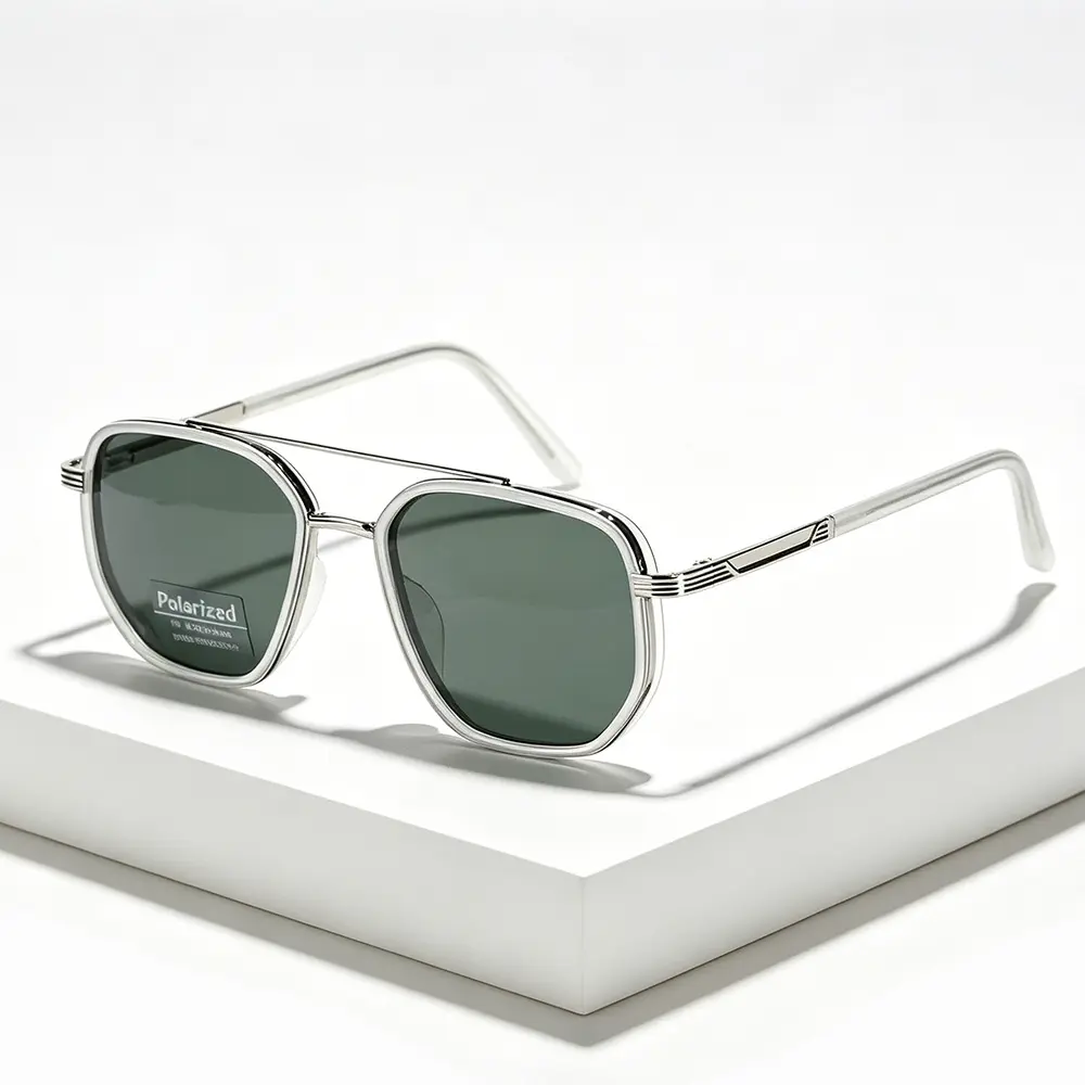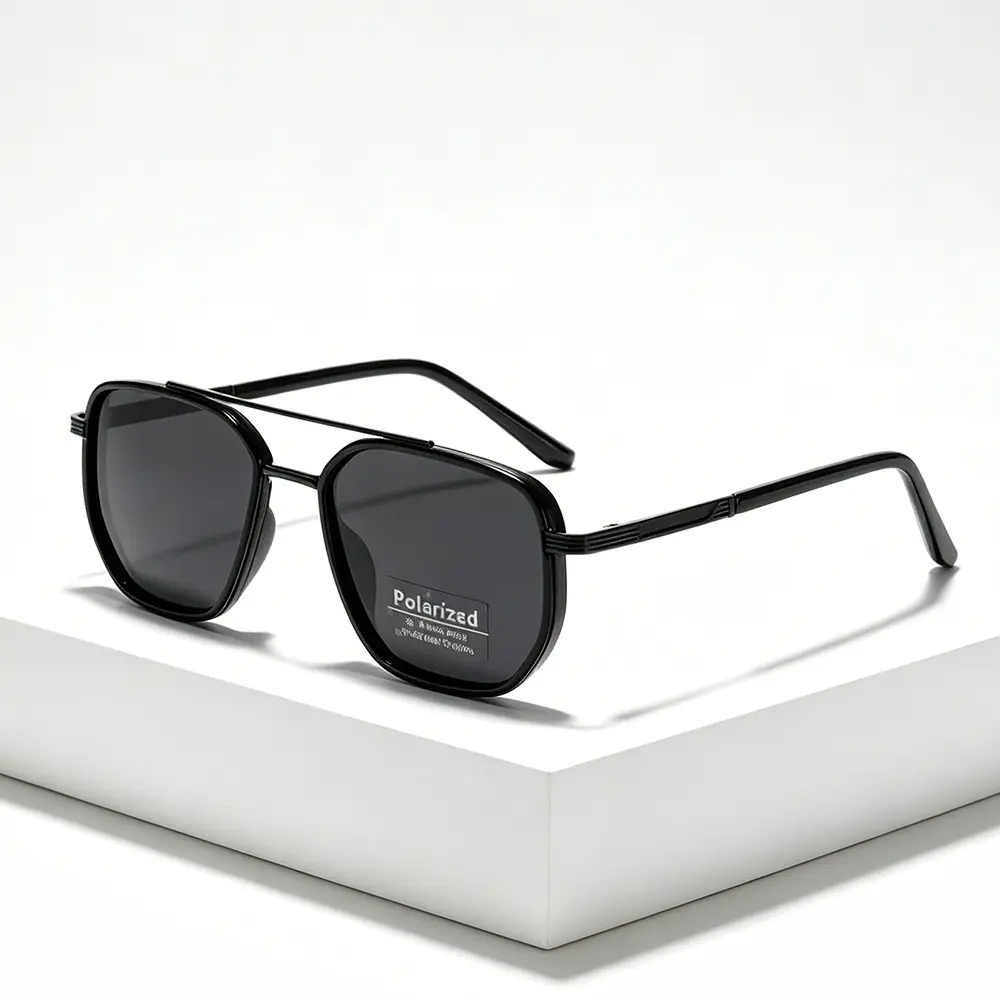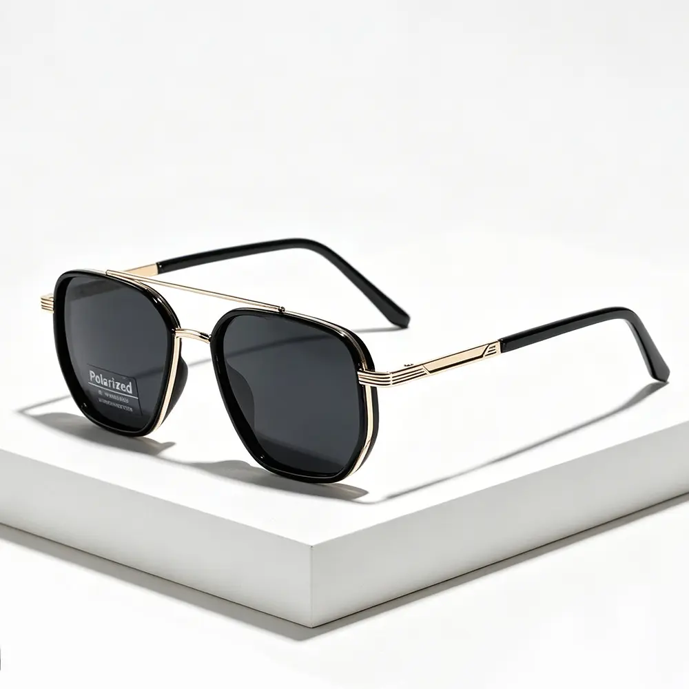 Classic Geometric Double Beam Sunglasses for Women Men Polarized Retro Tattoo Sunglasses for Travel Driving&Anti-Glare Eye Protection