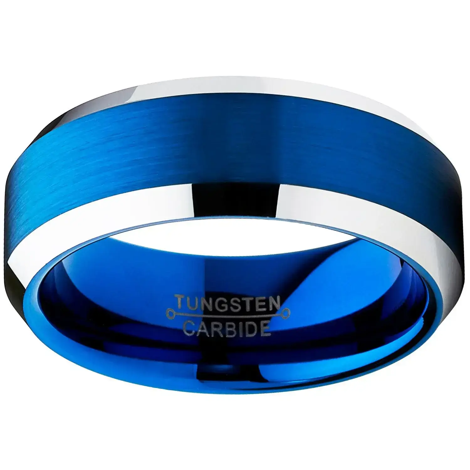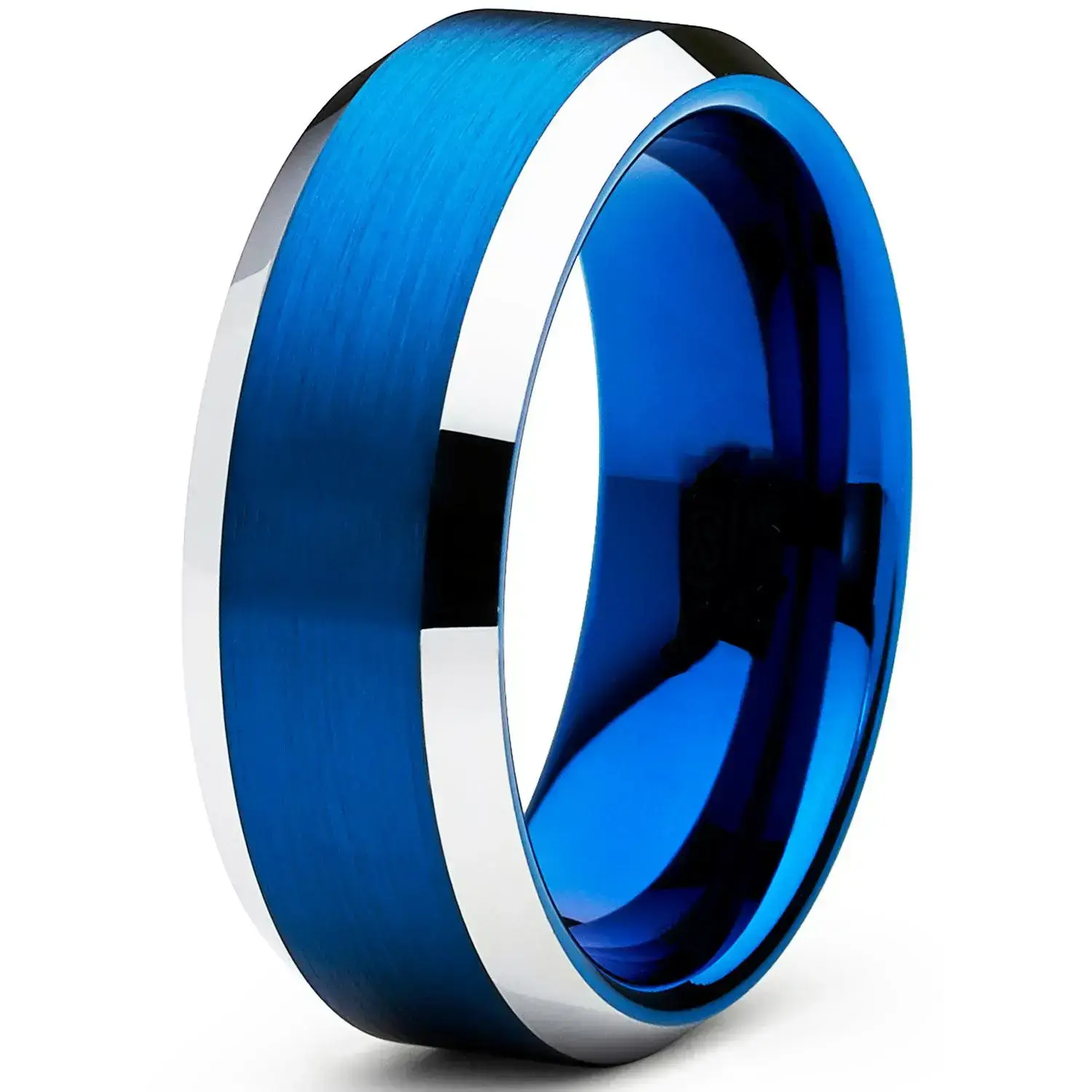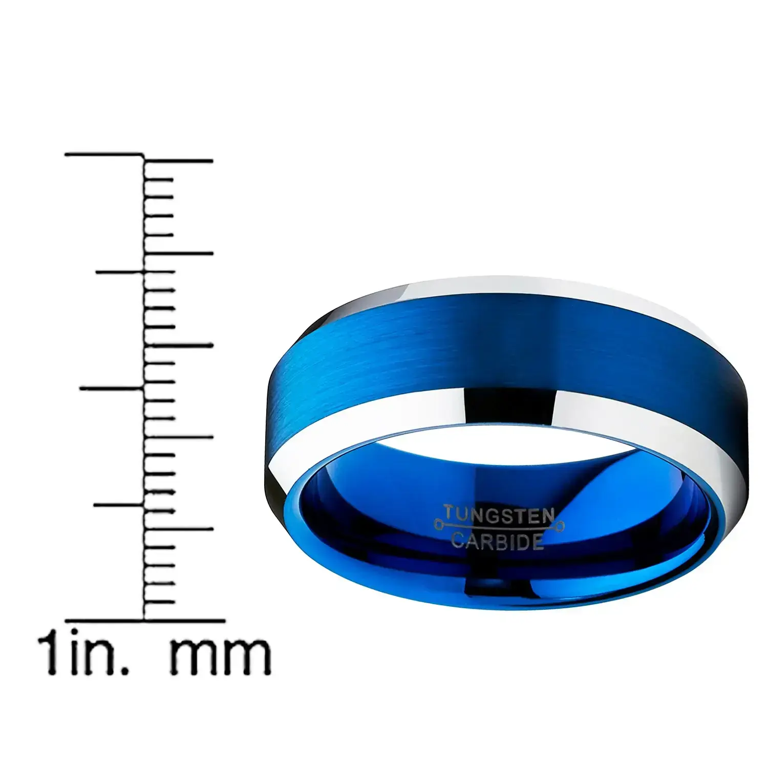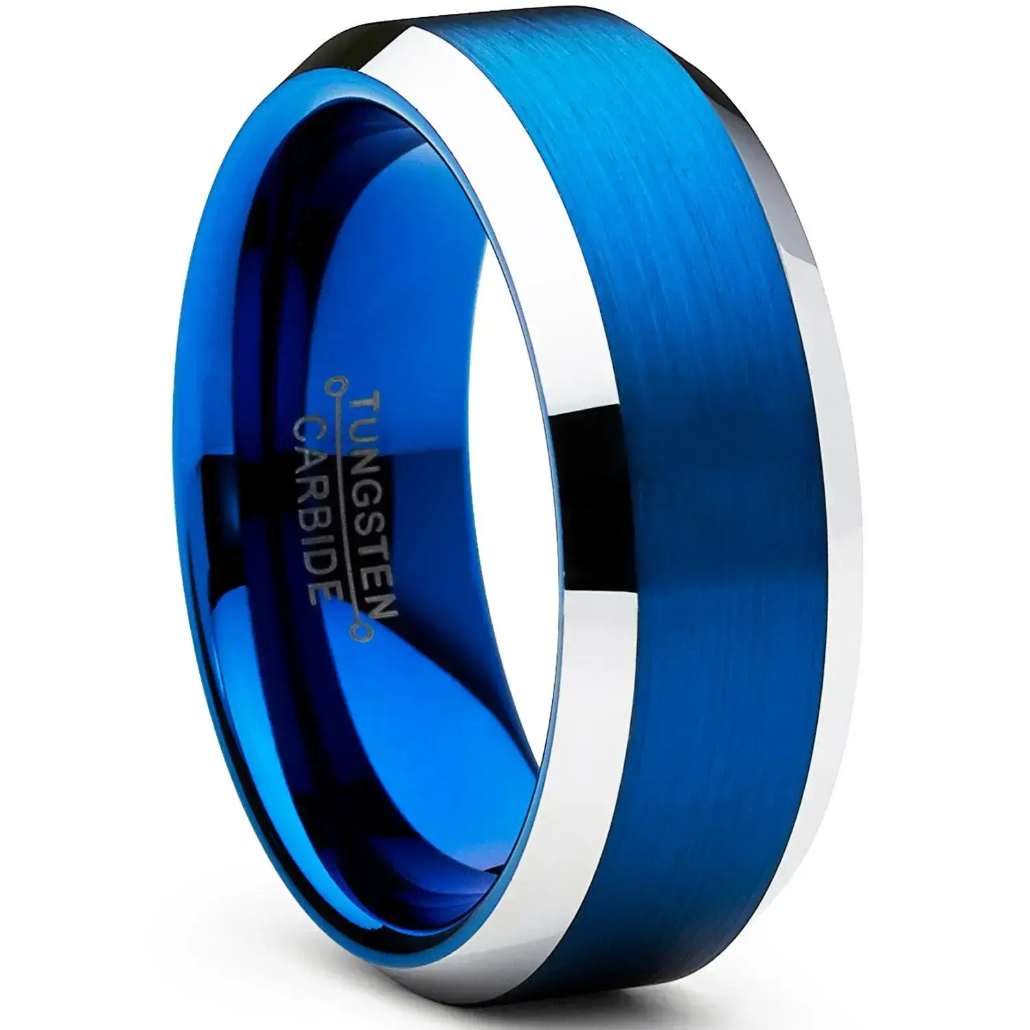 Tungsten Carbide Men's Brushed Wedding Band Blue Plated Engagement Ring Comfort-Fit