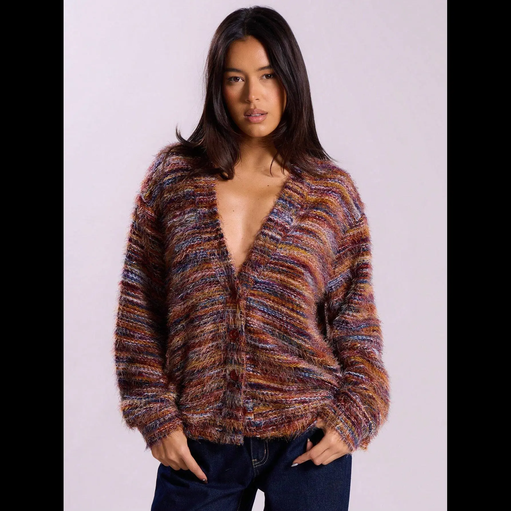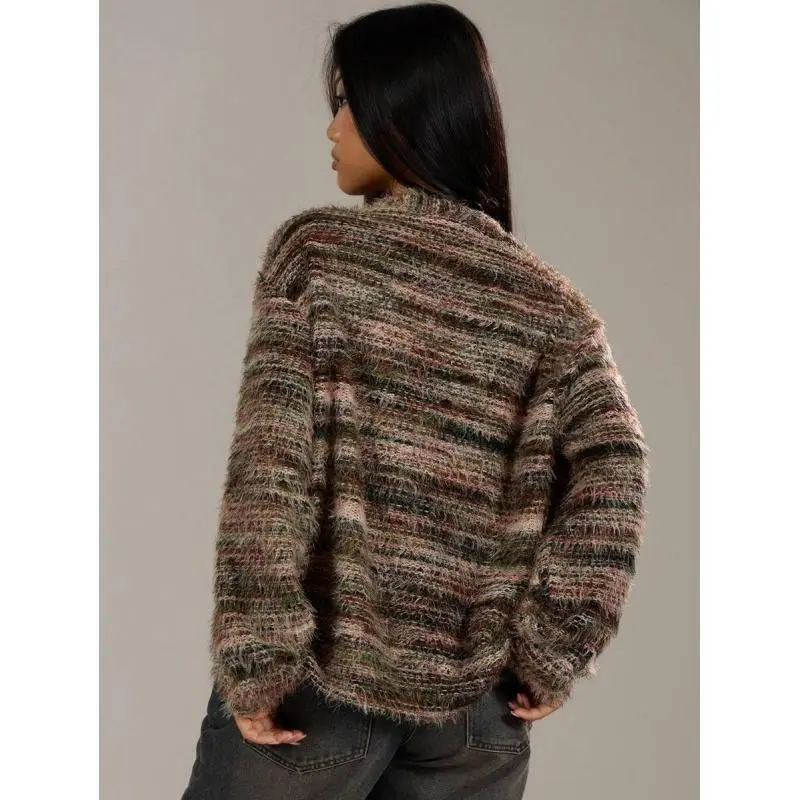 Oversized Textured Cardigan Spring Casual Y2k 90's Stripe Knit Airport Holiday Oversized Fall Back To School Streetwear Fit Knitwear