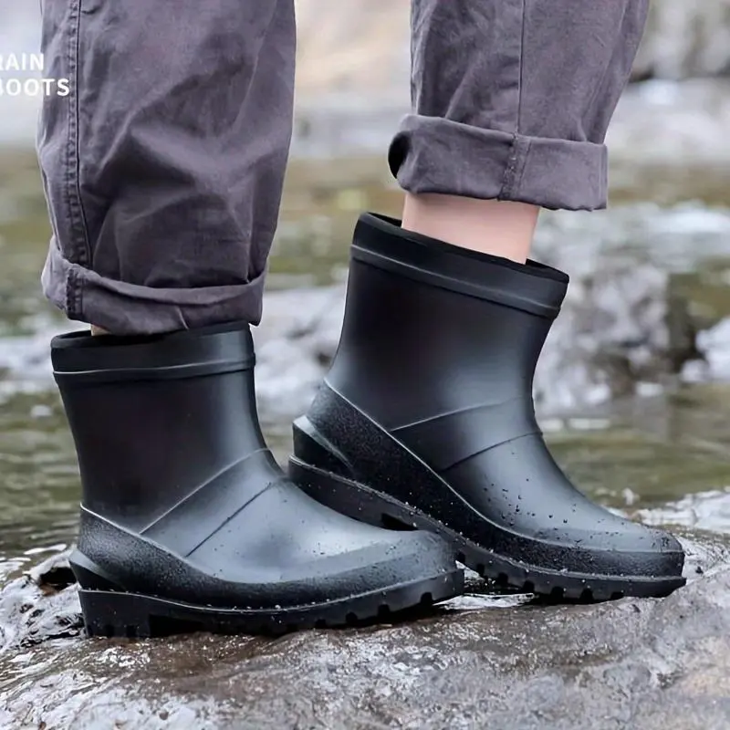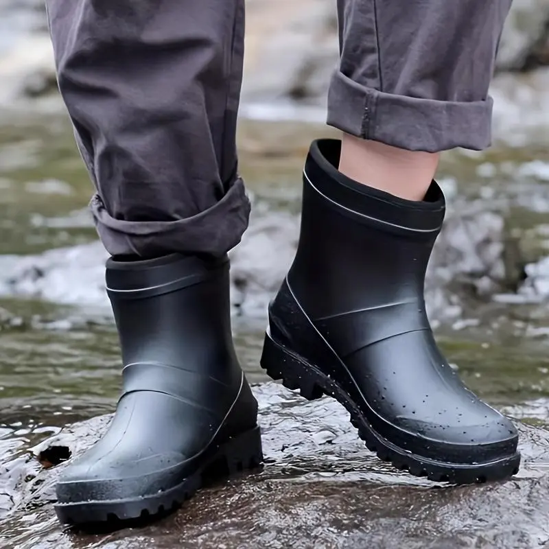(New)Men's All Seasons Comfy Slip On Rain Boots, Ankle High Water Boots For Outdoor Rainy Day Walking Fishing Boating wellies
