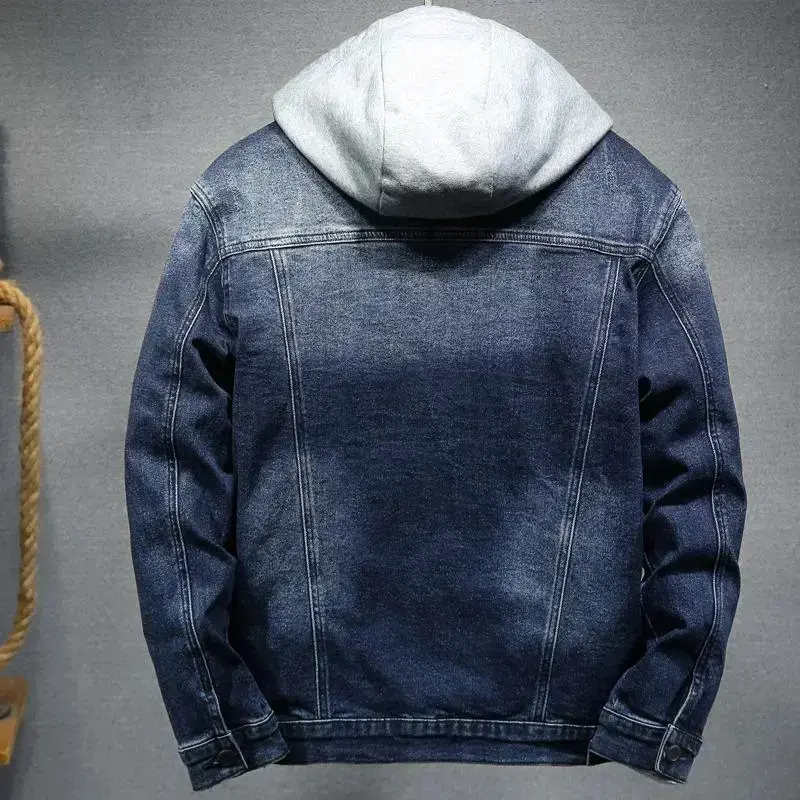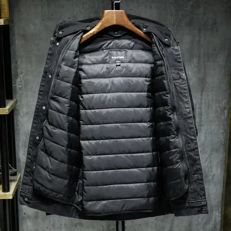 Thicker Winter Black Hooded Denim Jacket Outerwear Warm Men Lining Plus Cotton Thick Cowboy Jacket Coat Large Size 5XL