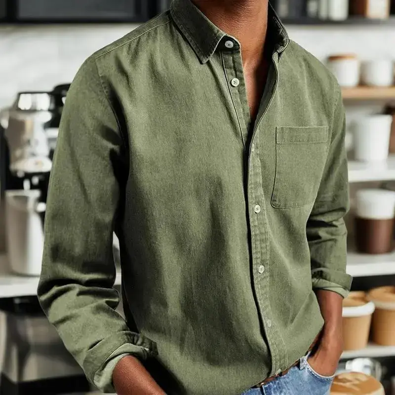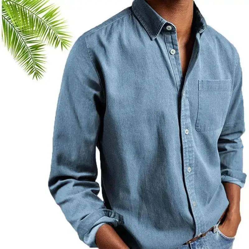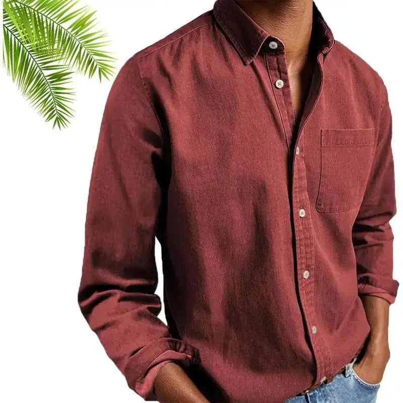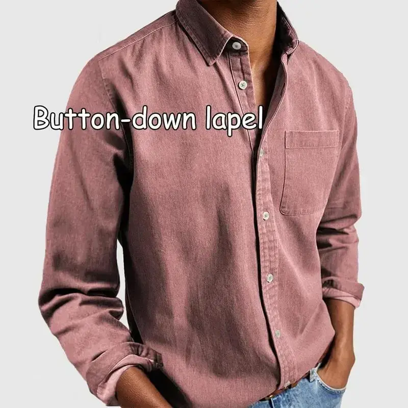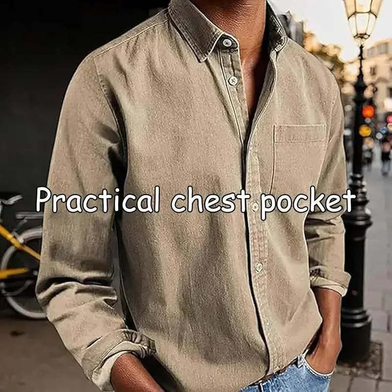 Men's shirt, gentlemen's casual cotton basic shirt, solid linen long sleeve formal button down lapel shirt with pockets