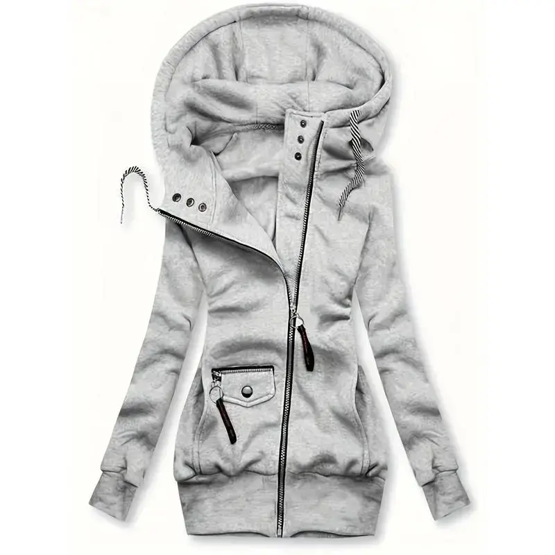 PrettyGarden Women's Casual Long Sleeve Lapel Zipper Sweatshirt Drawstring Loose Pullover Tops Fall Sweater-Womenswear Cotton Fabric