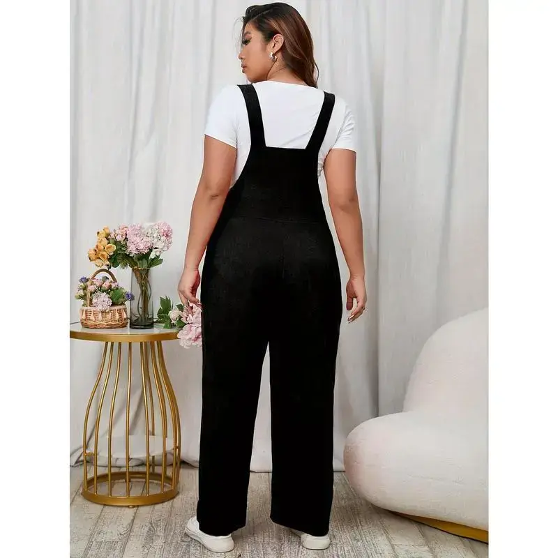 Plus Size Chic Solid Buckle Overall Jumpsuit - Sleeveless, Casual, Pocketed, Comfortable, Easy Wear - Women's Fashion Clothing for Curvy Figures Strappy Womenswear Basic Elegant Athletic Workout Romper Fitted Minimalist