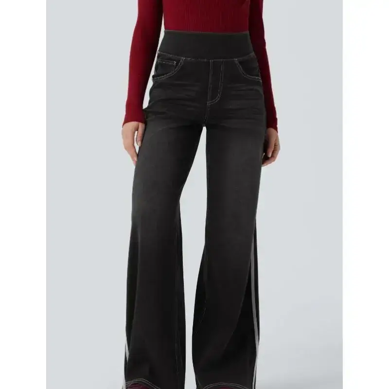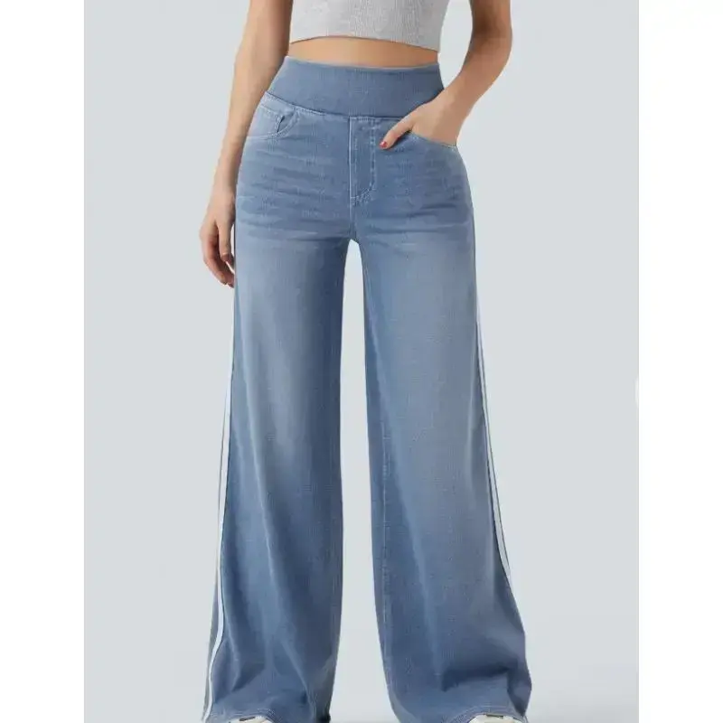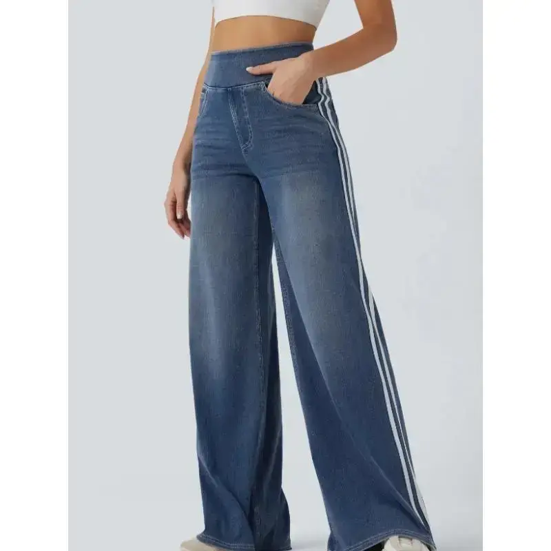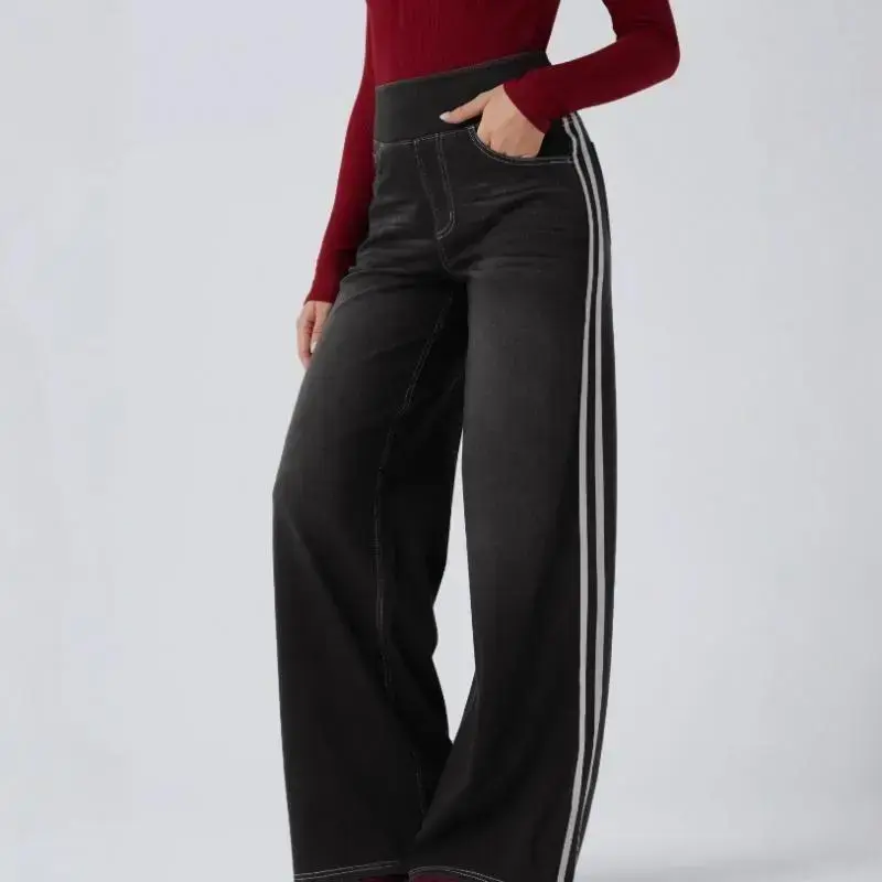Vintage Washed Blue Side Stripe Jeans for Women Y2K High Street Design Loose Versatile Wide Leg Pants Womenswear Bottom with Pockets Women's homecoming woman jean black long pant snake print Stretch Denim Tights Multi-Pocket Cargo flare starched