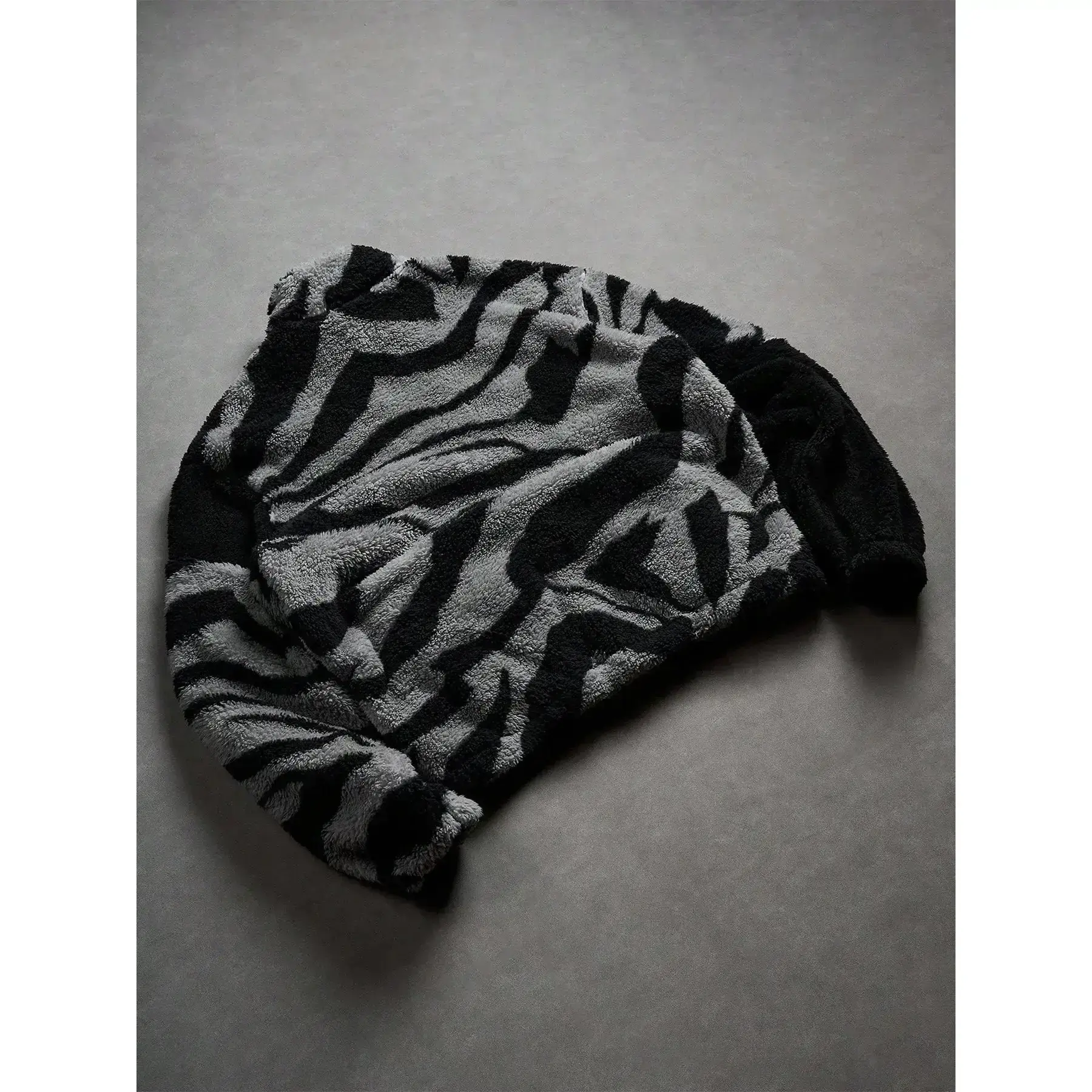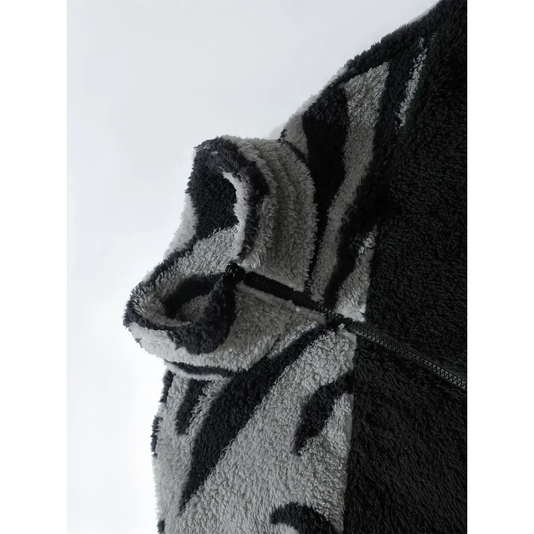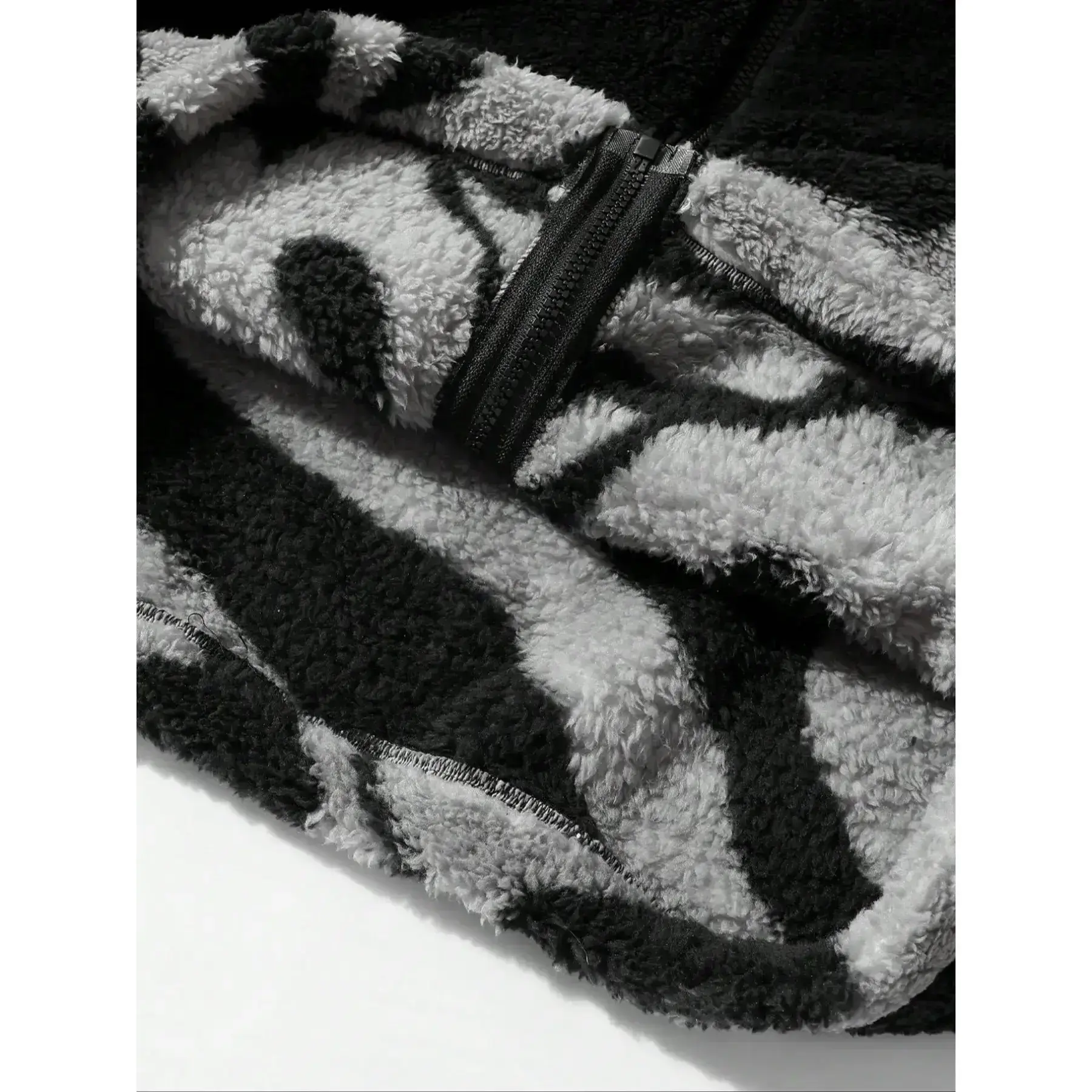 【Unique Pattern】: Features an eye-catching zebra stripe patchwork in vibrant colors, making it a standout in any streetwear collection. 【Warm Fabric】: Crafted from fleece material, this jacket ensures warmth and coziness during the cold fall and winter seasons. 【Long Sleeves】: Equipped with long sleeves, providing extra coverage and warmth, suitable for chilly outdoor activities. 【Fitted Cut】: This fitted jacket provides a trendy silhouette while allowing for ease of movement without excess bulk. 【Unisex Design】: Designed for both men and women, making it a great couples' outfit choice for coordinated looks.