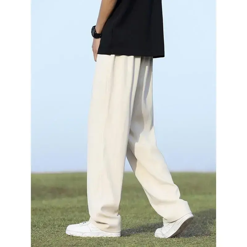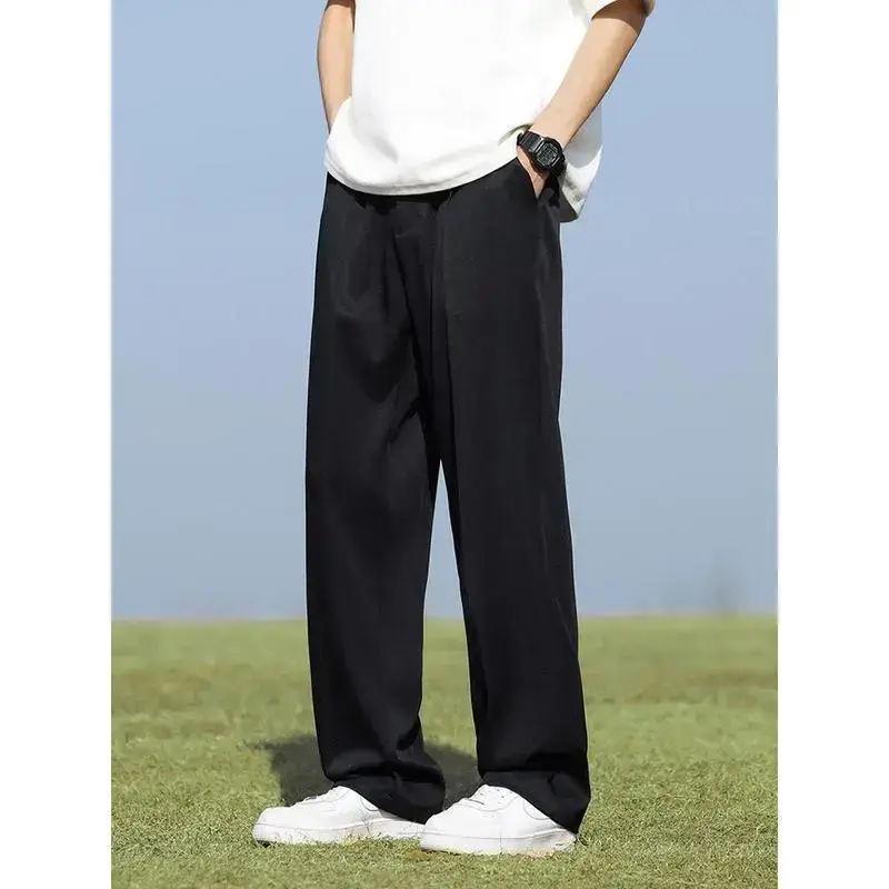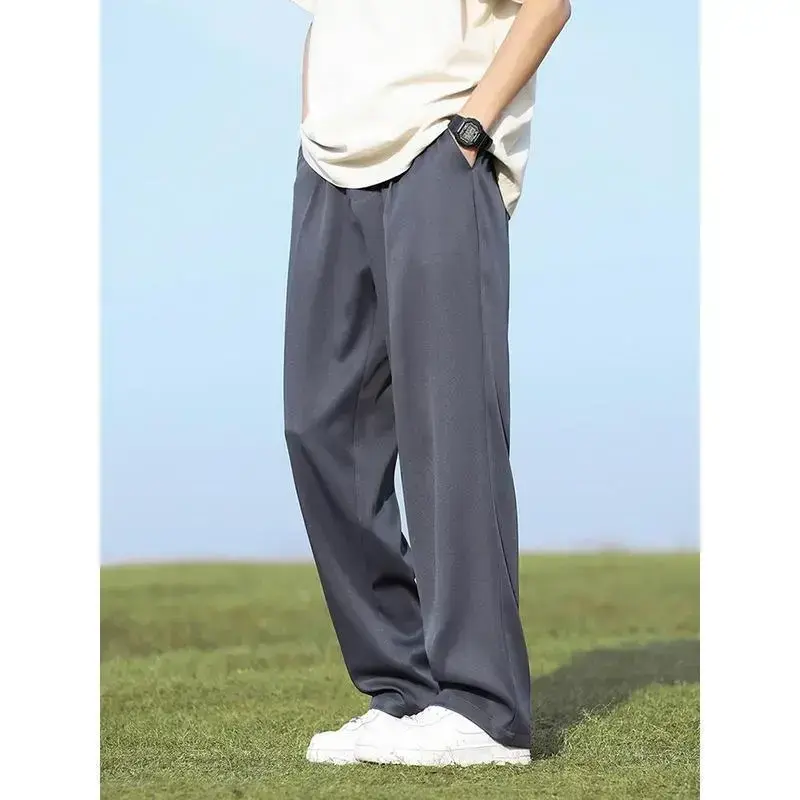 Summer Korean Men's Pants Light&Thin Polyester Elastic Waist Semi-Wide Loose Slacks Drape Suit Pants Male Casual Trousers