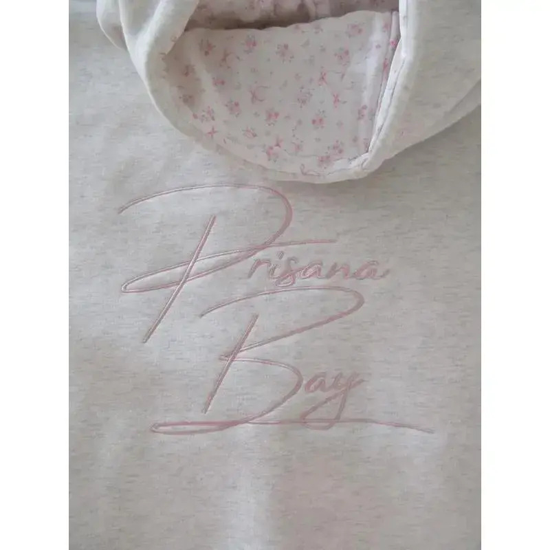 Bowknot Hoodie Retro Trend Simple Floral Letter Bowknot Pattern Gray Pullover Sweater Top Embroidered Hoodie Hoodie