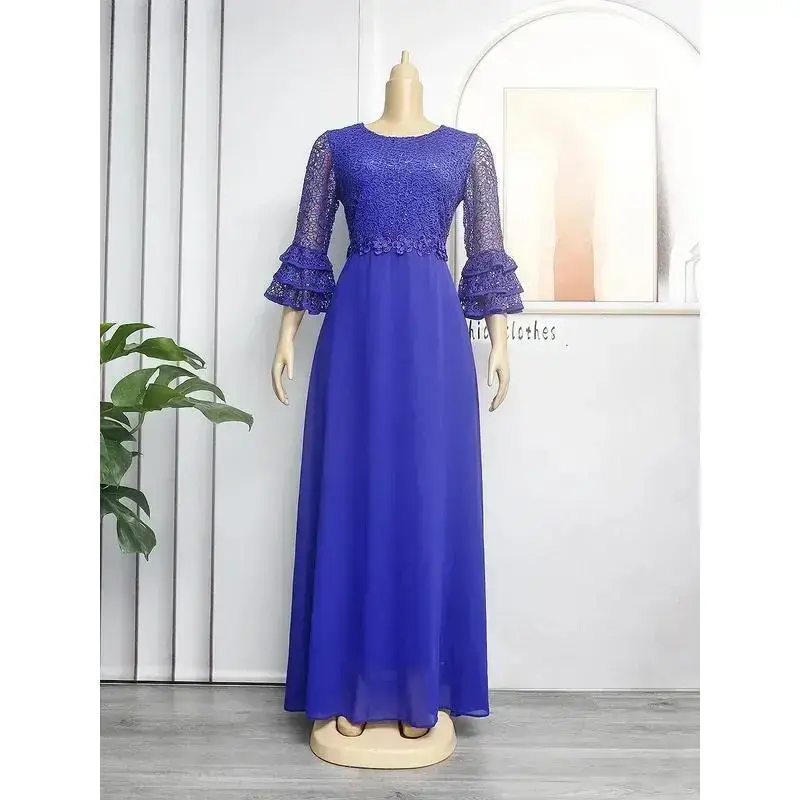 Plus Size African Party Dresses for Women 2024 New Fashion Dashiki Ankara Lace Wedding Gowns Elegant Turkey Muslim Maxi Dress Can be used with raincoat