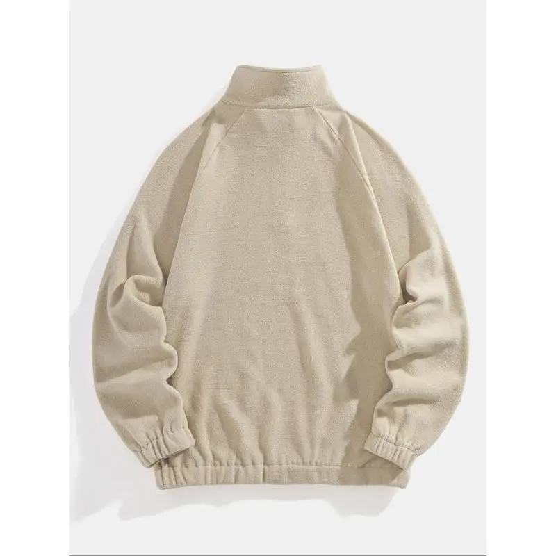 Men's "C' EST LA VIVE PARIS" Letter Embroidery Half Zip Polar Fleece Sweatshirt, Casual Regular Fit Long Sleeve Stand Collar Pullover for Fall & Winter, Fashion Men's Clothes for Daily Wear