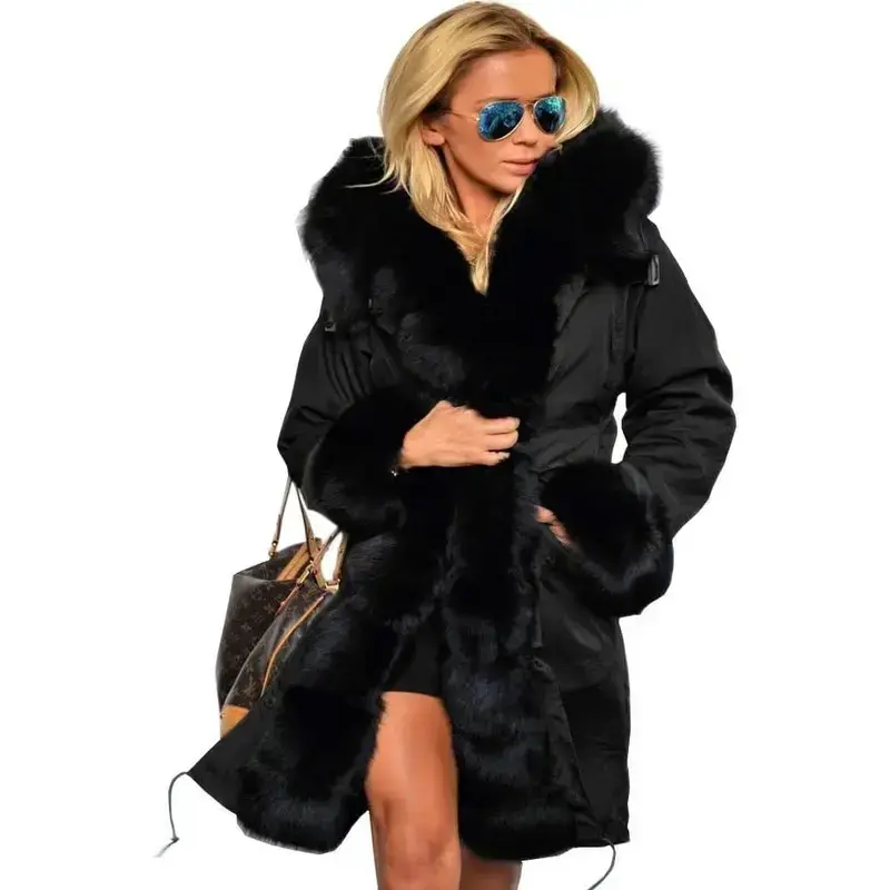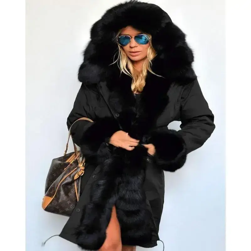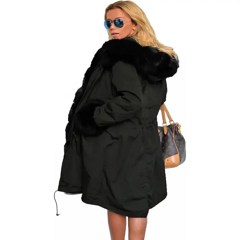 Womens Hooded Faux Fur Lined Warm Coats Parkas Anoraks Outwear Winter Long Jackets