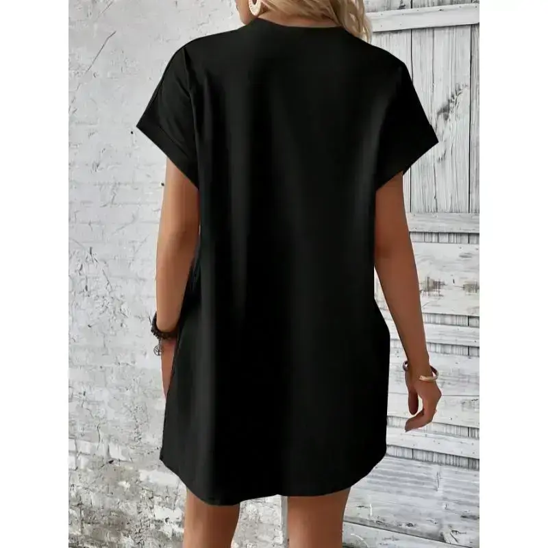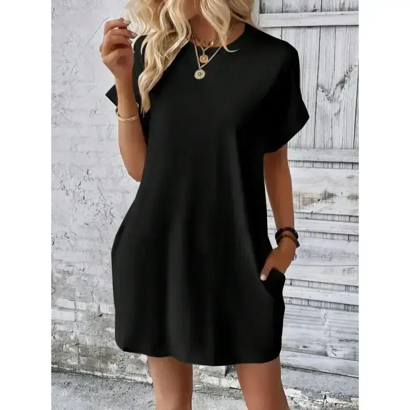 Type:Tee/Sleeve Type:Batwing Sleeve/Style:Casual/Waist Line:Natural/Details:Pocket/Neckline:Round Neck/Hem Shaped:Straight/Color:Black/Pattern Type:Plain/Sleeve Length:Short Sleeve/Lined For Added Warmth:No/Length:Short/Fit Type:Loose/Fabric:Medium Stretch/Material:Fabric/Composition:95% Polyester/Composition:5% Elastane/Care Instructions:Machine wash or professional dry clean/Pockets:Yes/Sheer:No