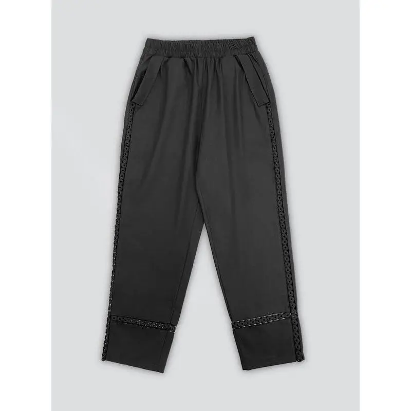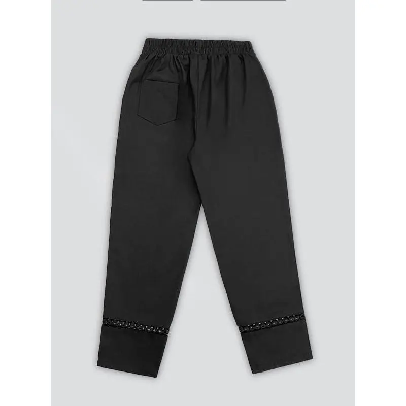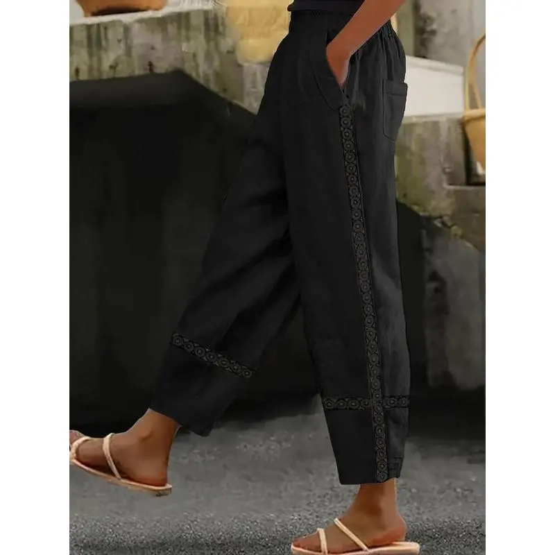 Women's Floral Embroidery Lace Up Pants, Boho Casual Elastic Waist Trousers for Beach Vacation Holiday, Ladies Bottoms for Spring & Fall
