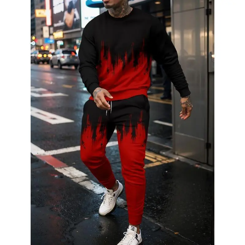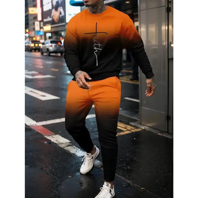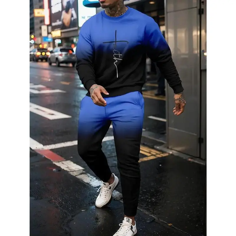 2pcs Men's Casual Letter Tie Dye Print Raglan Sweatshirt And Sweatpants Set Clothes Topwomen's clothing