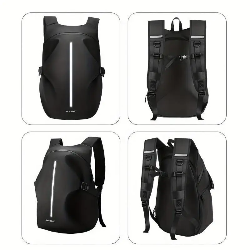 Black motorcycle riding backpack with large capacity, reflective, and helmet storage is the perfect gift for men's riding, cycling, and hiking