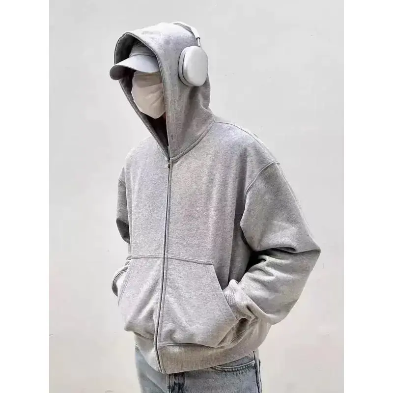 600 GSM Heather Grey Zip-Up Hoodie for Casual Wear