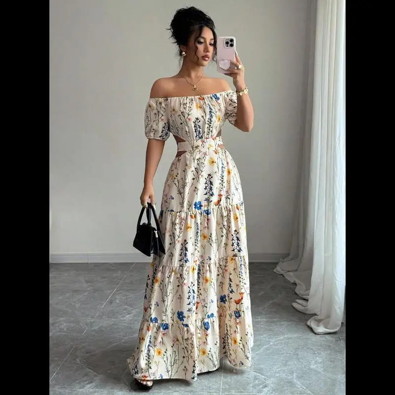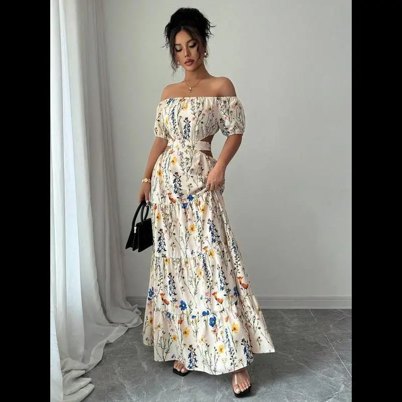 Floral Casual Dress for Women, Fitted Woven Fabric, Perfect for All Seasons, Ages 13 and Up Womenswear Everyday
